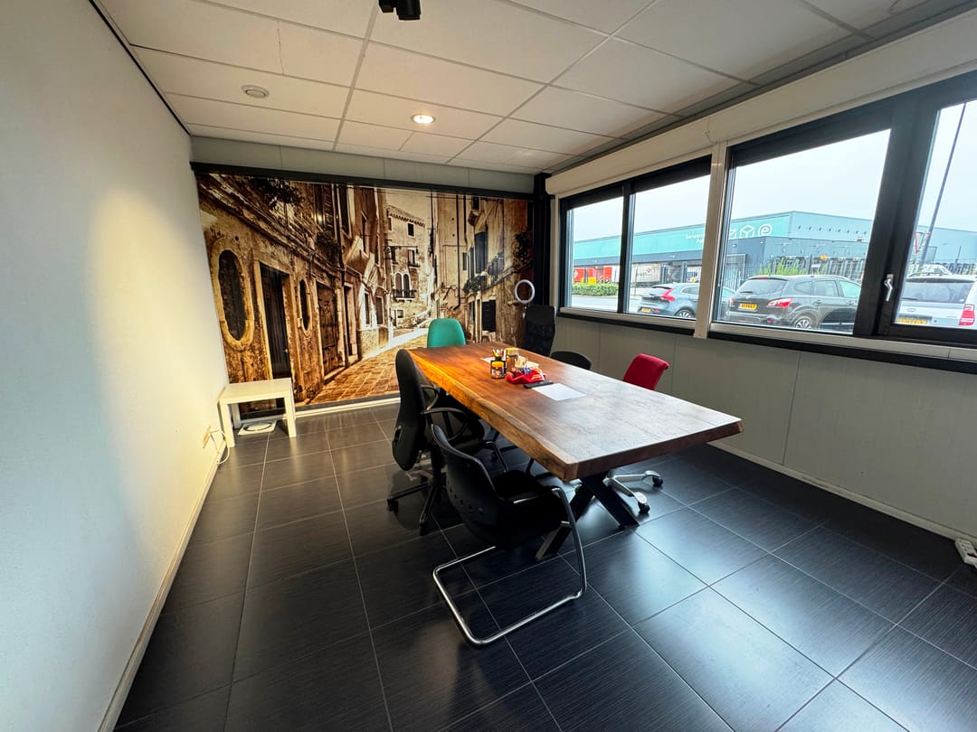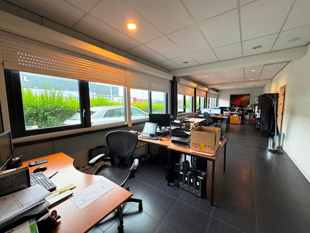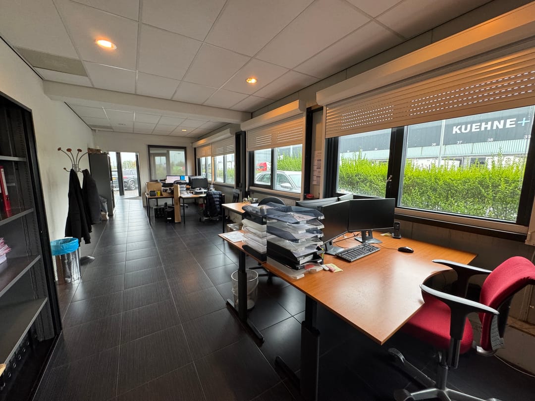 De begane grond is voorzien van een entree, spreekkamer, kantoorruimte, kantine, toiletten en een doorgang naar de bedrijfshal. De bedrijfshal beschikt over vier overheaddeuren en twee loopdeuren en heeft een vrije hoogte van circa 3,30 meter (onder mezzanine). De eerste verdieping bestaat uit kantoor- en opslagruimten. Dankzij een zogenaamde stellingvloer is hier extra magazijnruimte ontstaan, bereikbaar via een goederenlift. Indien gewenst kan de tussenvloer worden verwijderd, waardoor één grote bedrijfshal ontstaat met een vrije hoogte van ca. 6 meter.