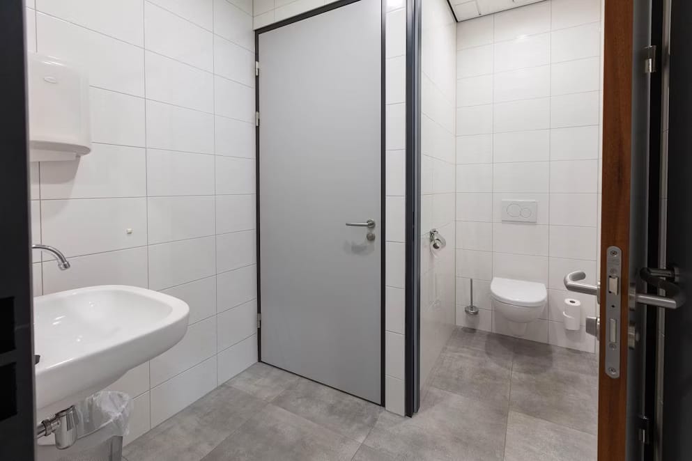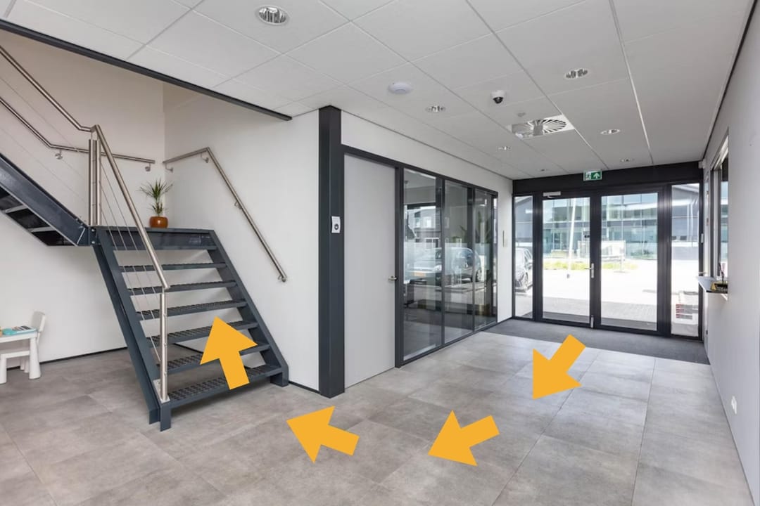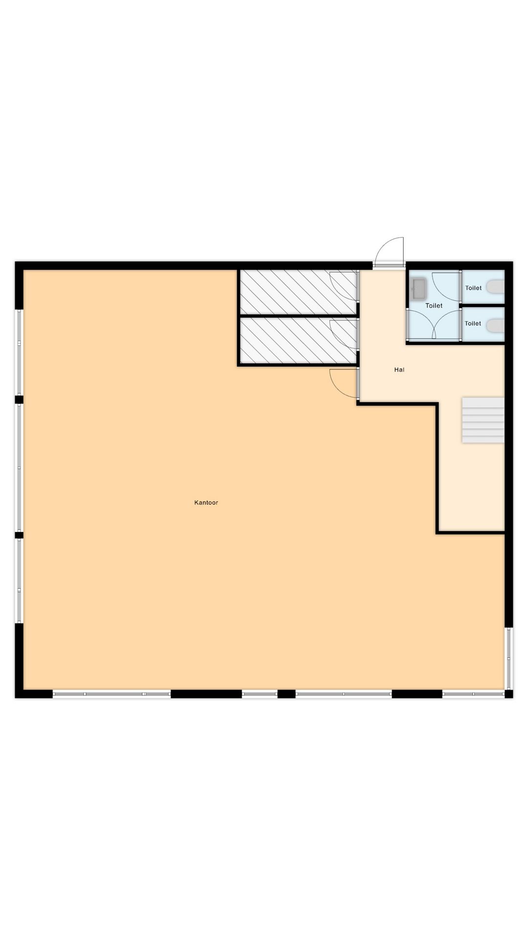 De kantoorruimte is bereikbaar via de gezamenlijke entree op de begane grond en toegankelijk via een vaste trap. Binnen biedt de kantoorruimte een prettig werkklimaat dankzij de grote raampartijen met veel daglicht, een keurige afwerking en een eigen sanitaire voorziening met twee toiletten.