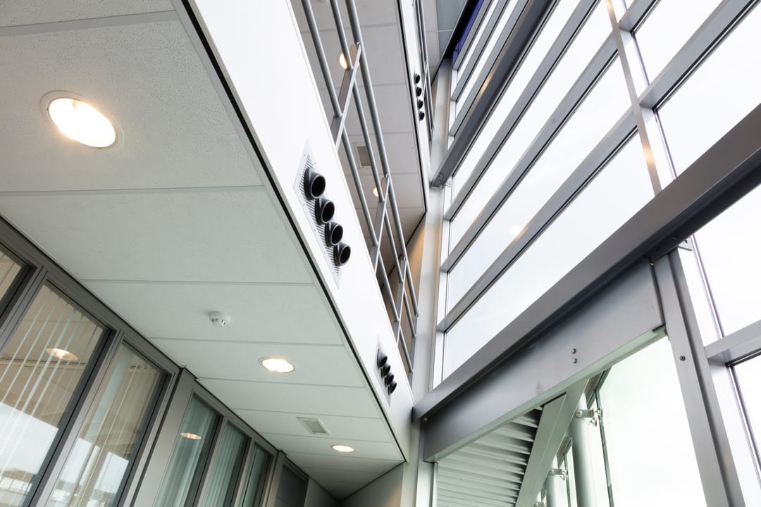 - Airconditioning, mechanische ventilatie, inbouwarmaturen, te openen ramen, kabelgoten, systeemplafond, toilet, pantry, verwarming en kamerindeling