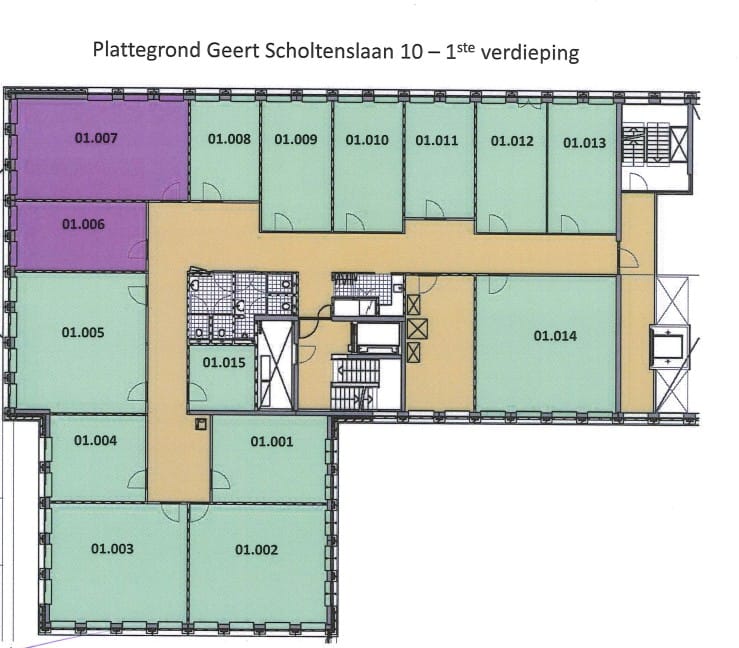 De kantoorruimte is beschikbaar voor tijdelijke verhuur, de huurperiode is in overleg. De kantoorruimten zijn aangegeven met de nummers 01.006 en 01.007