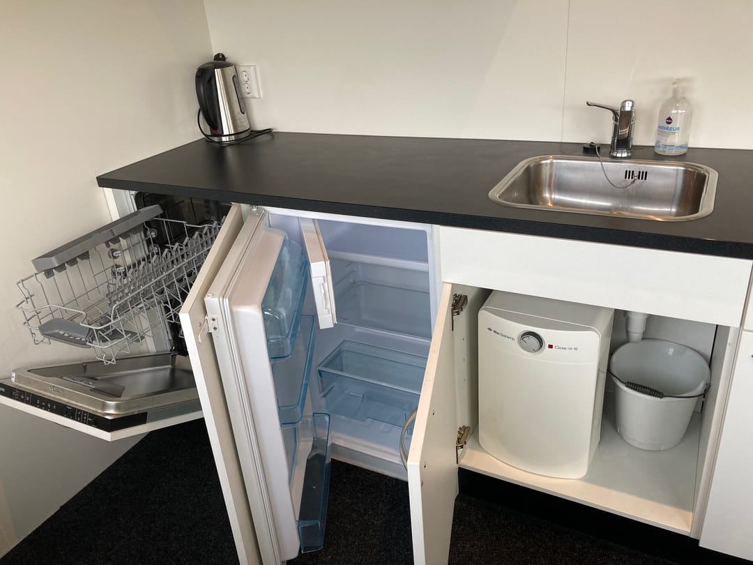 - Inbouwarmaturen, te openen ramen, kabelgoten, systeemplafond, toilet, pantry, verwarming en kamerindeling