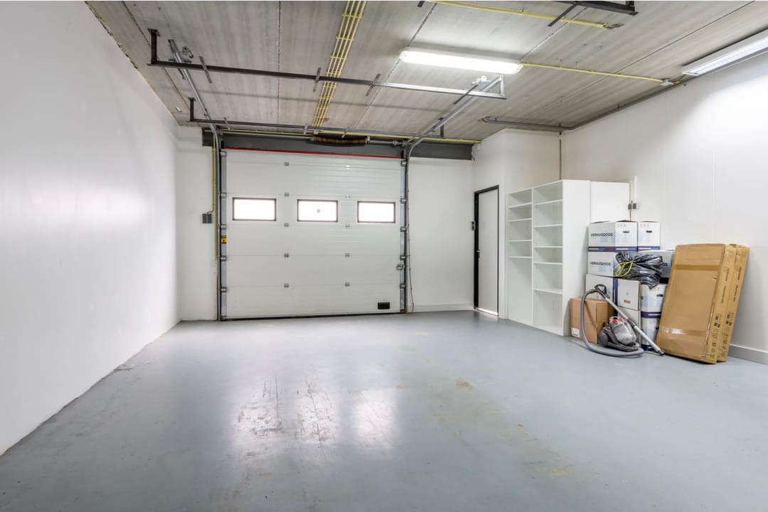 - Overheaddeuren, betonvloer, heater, toilet, pantry, airconditioning, inbouwarmaturen en te openen ramen