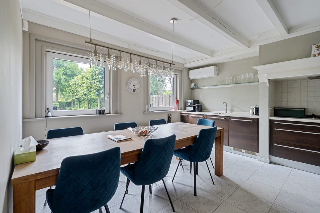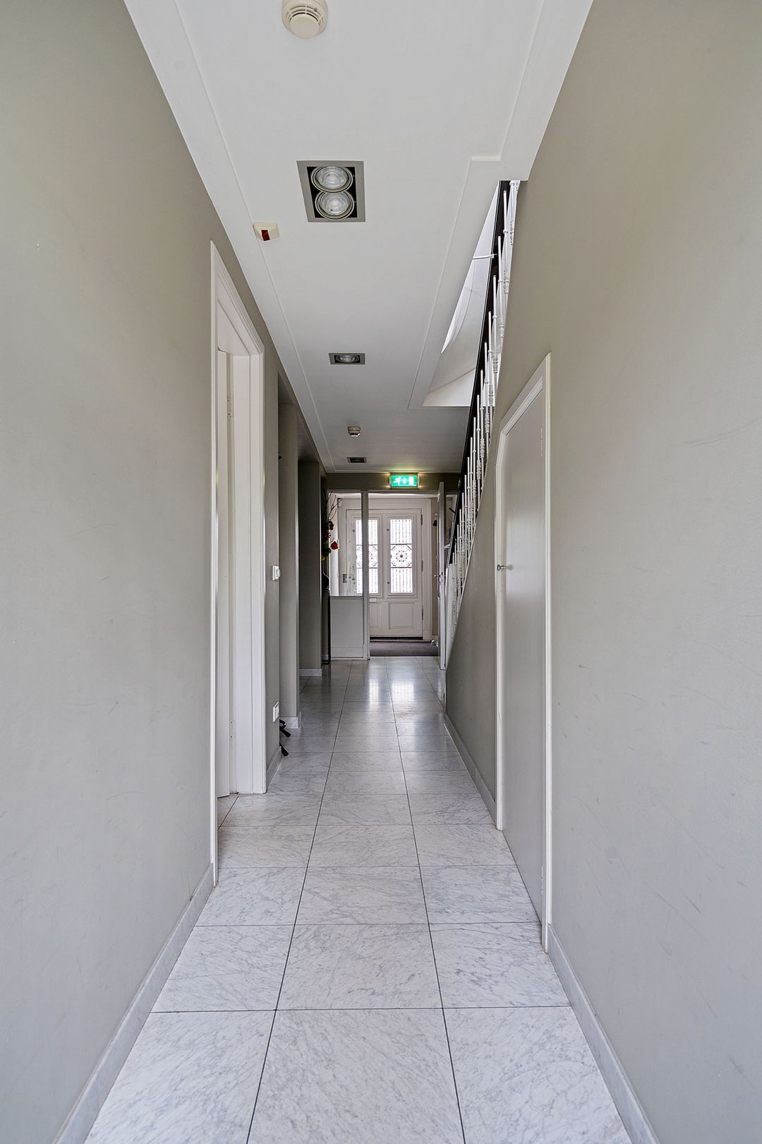 Parterre: voortuin, entree, zeer royale ontvangstruimte met trapopgang naar de verdieping, stijlvolle sanitaire voorzieningen, 3 kantoorkamers, moderne keuken met inbouwapparatuur en zicht op de fraai aangelegde tuin;