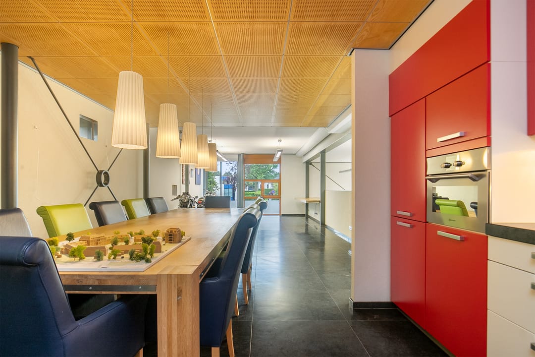 - Mechanische ventilatie, te openen ramen, kabelgoten, systeemplafond, pantry en verwarming