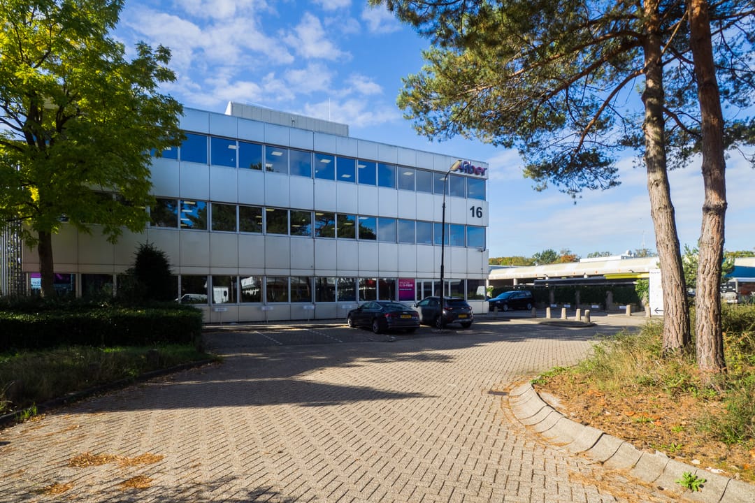 Dit gebouw ligt op zichtlocatie aan de rand van Zeist met de A28 om de hoek.
