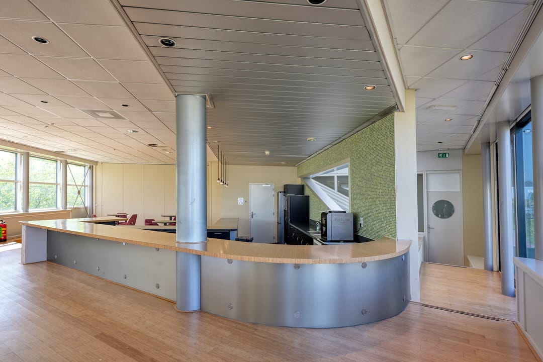 Pantry’s en bedrijfskantine zijn voorzien van vaatwasser en koffieautomaat. Wekelijkse schoonmaak van de algemene ruimten en maandelijks buitenterrein onderhoud.