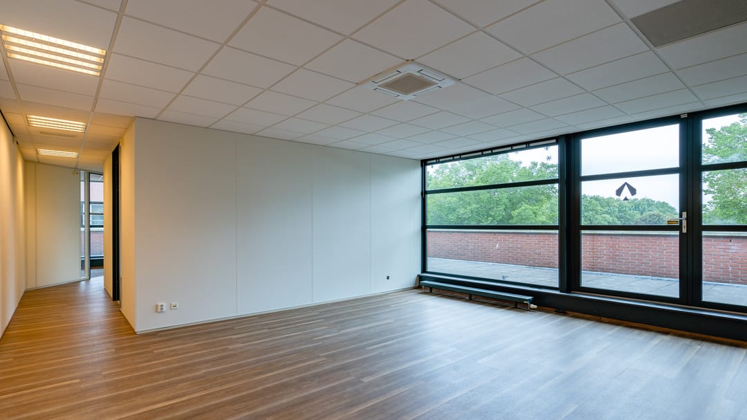 - Airconditioning, inbouwarmaturen, te openen ramen, kabelgoten, systeemplafond, toilet, pantry, verwarming en kamerindeling
