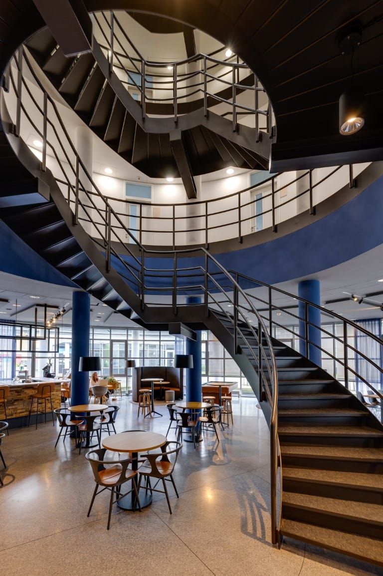 - In dit gebouw zijn tevens de centrale receptie en de Tbrasserie gevestigd op de begane grond