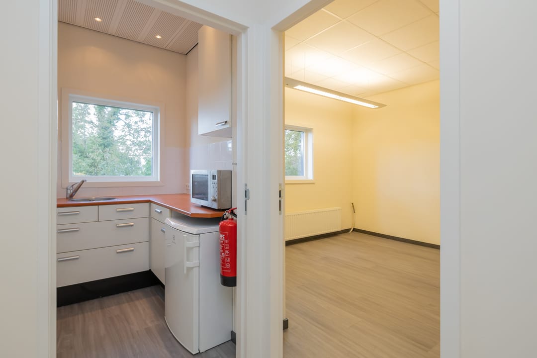 De kantoorruimte beschikt over een eigen pantry en sanitaire voorzieningen, waardoor het voorziet in alle benodigdheden voor een comfortabele werkomgeving.