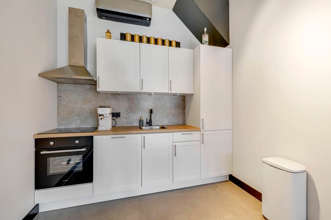 - Pantry met koelkast, vriezer, vaatwasser, kookplaat, afzuigkap en boiler