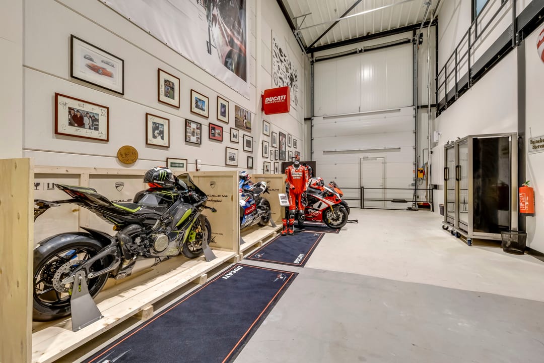 Berdrijfshal met elektrische bedienbare overheaddeur. volledig betegeld toilet. Aansluiting voor wasmachine en boiler (80 liter). De gehele verdieping (kantoor & bedrijfshal) zijn voorzien van vloerverwarming slangen, de bedrijfshal is afgewerkt met een praktische gietvloer.