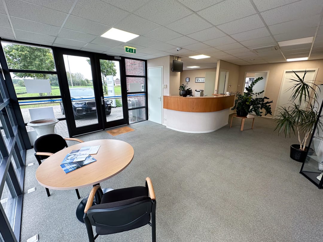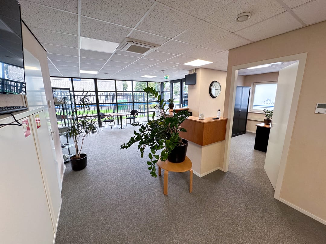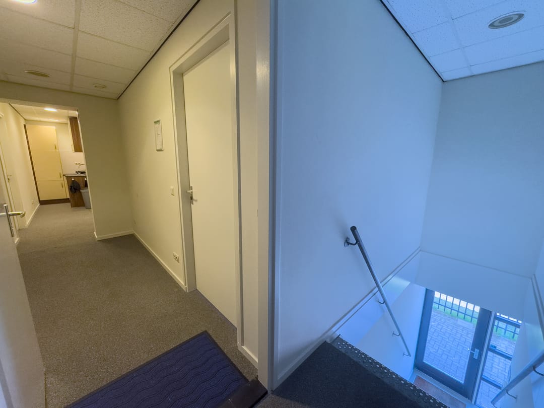 Op de begane grond kom je binnen via de representatieve entree met balie. Vanuit hier heb je toegang tot een centrale hal die de verschillende ruimtes met elkaar verbindt. De entree is voorzien van een intercom en elektrische deuropener.
