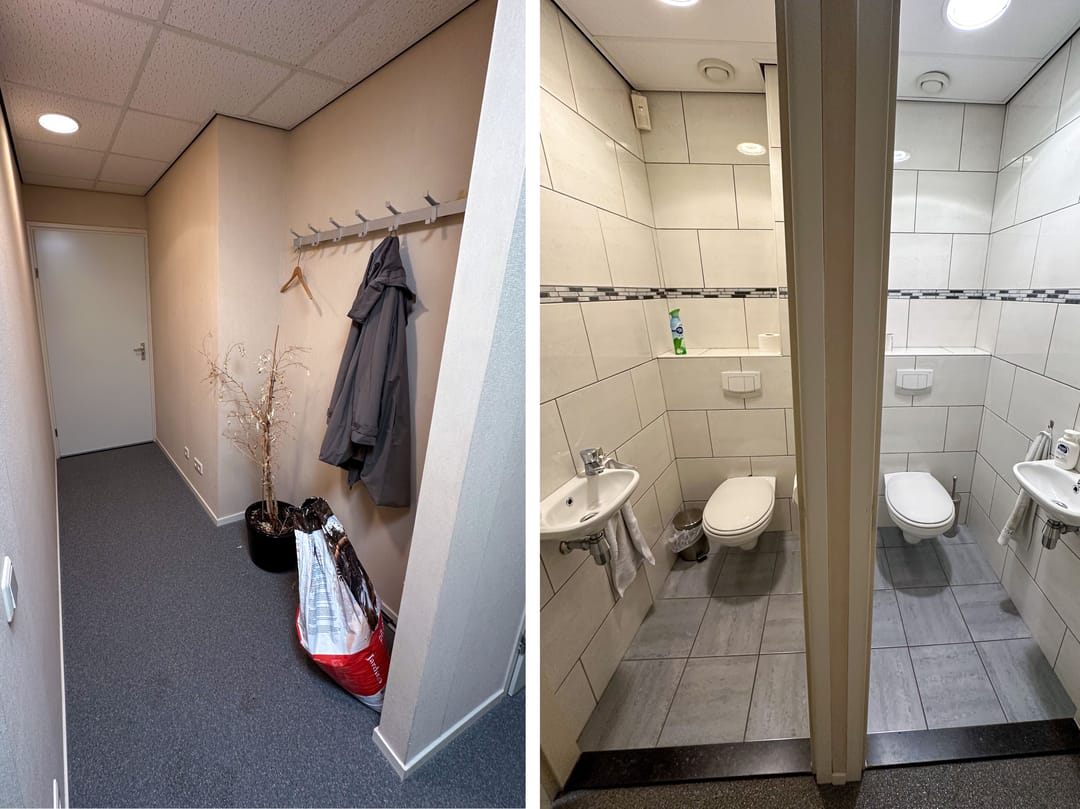 Aangrenzend aan de kantoorruimte bevinden zich:
