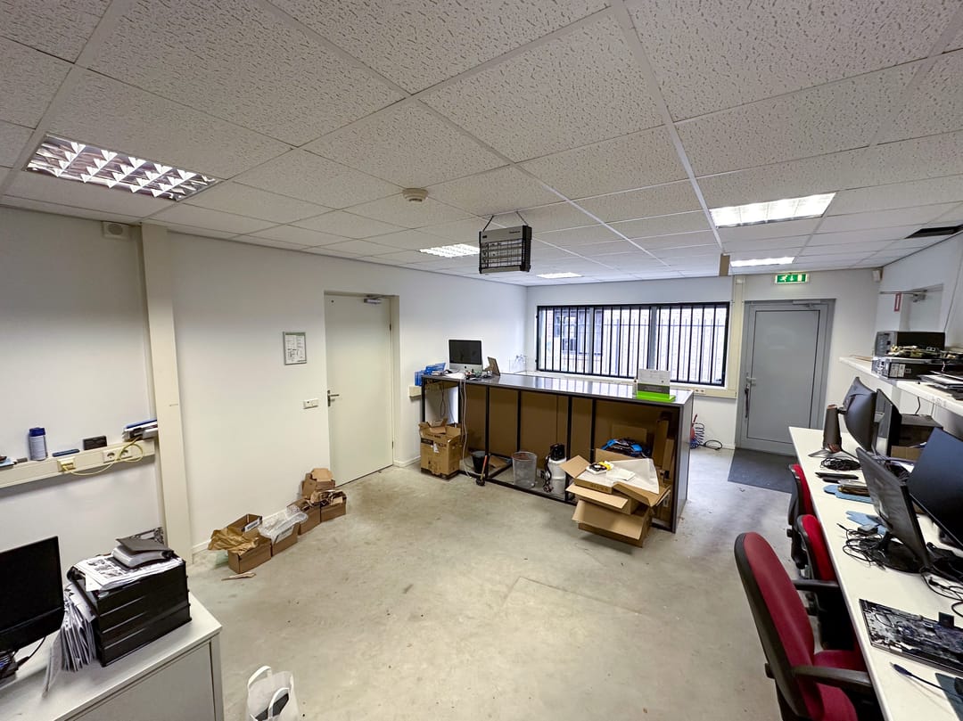 Het object beschikt over meerdere kantoorruimtes, verdeeld over de begane grond en de 1e verdieping. Achter de kantoorruimtes bevinden zich twee loodsen/werkplaatsen. Onder het kantoorgedeelte bevindt zich een royale kelder, verdeeld in drie afzonderlijk afsluitbare ruimten. In één van deze ruimtes komt de bekabeling van de begane grond samen met de kabels uit de patchkasten op de eerste verdieping.