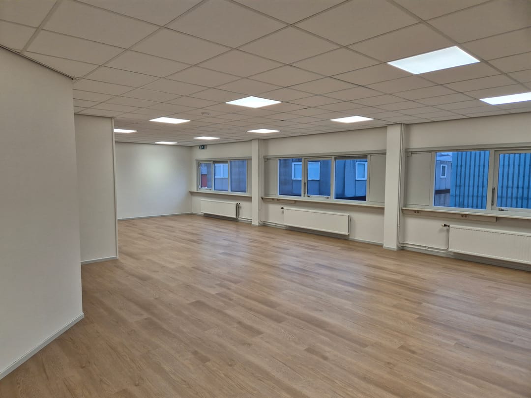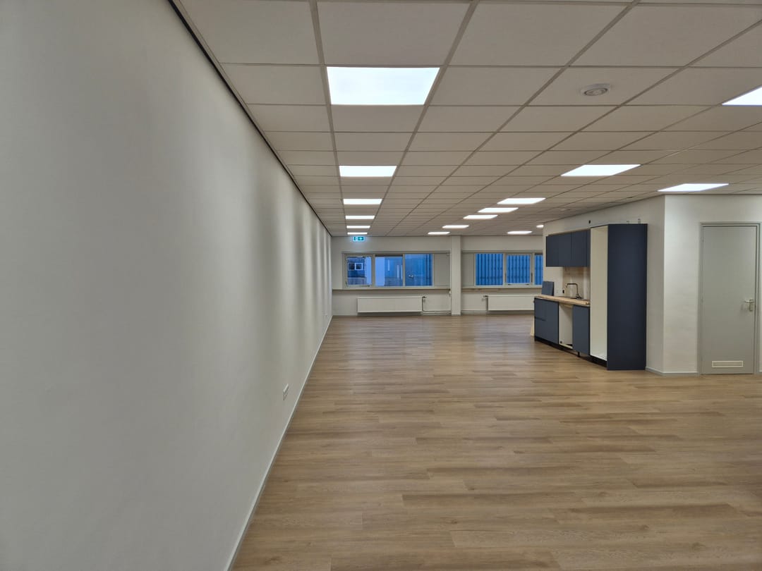 - Mechanische ventilatie, inbouwarmaturen, kabelgoten, systeemplafond, toilet, pantry, verwarming en kamerindeling