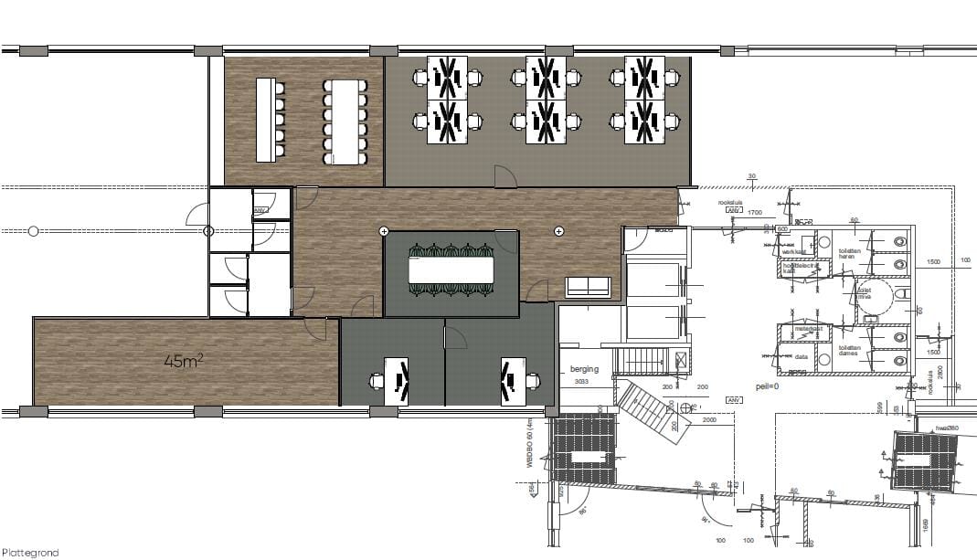 Servicekosten: € 45,00 per m² per jaar, exclusief BTW.