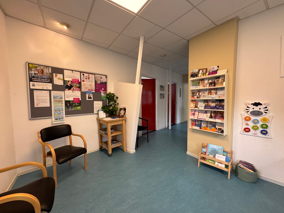 Indeling: entree, toilet, wachtkamer, balie en een drietal spreekkamers.
