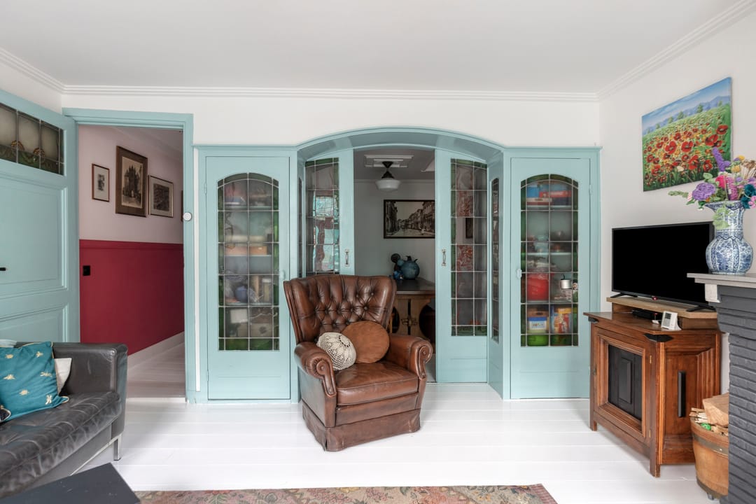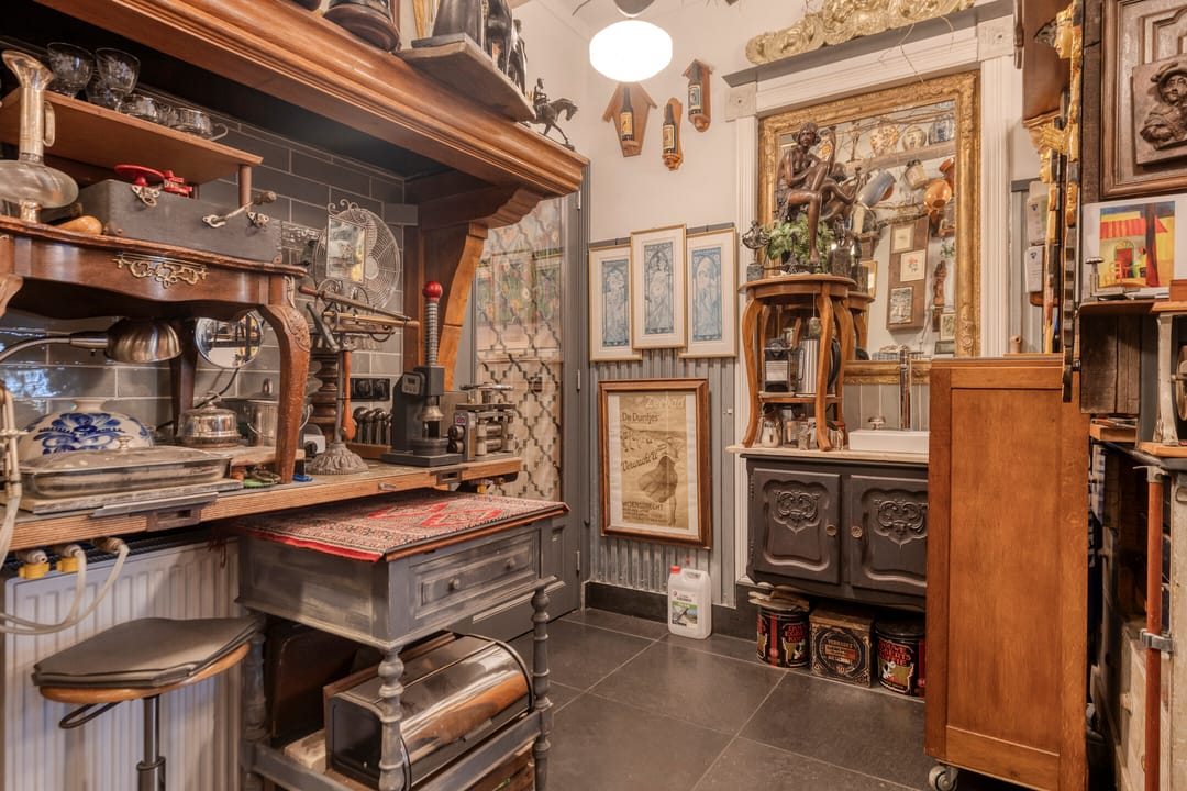 Via de stijlvolle entree bereikt u de voormalige goudsmederij, thans ideaal als praktijk- of werkruimte. Met antieke schouw, houtkachel en historische details straalt deze ruimte direct charme en authenticiteit uit. De kamer leent zich perfect als atelier, zelfstandige woonunit of mantelzorgsuite.