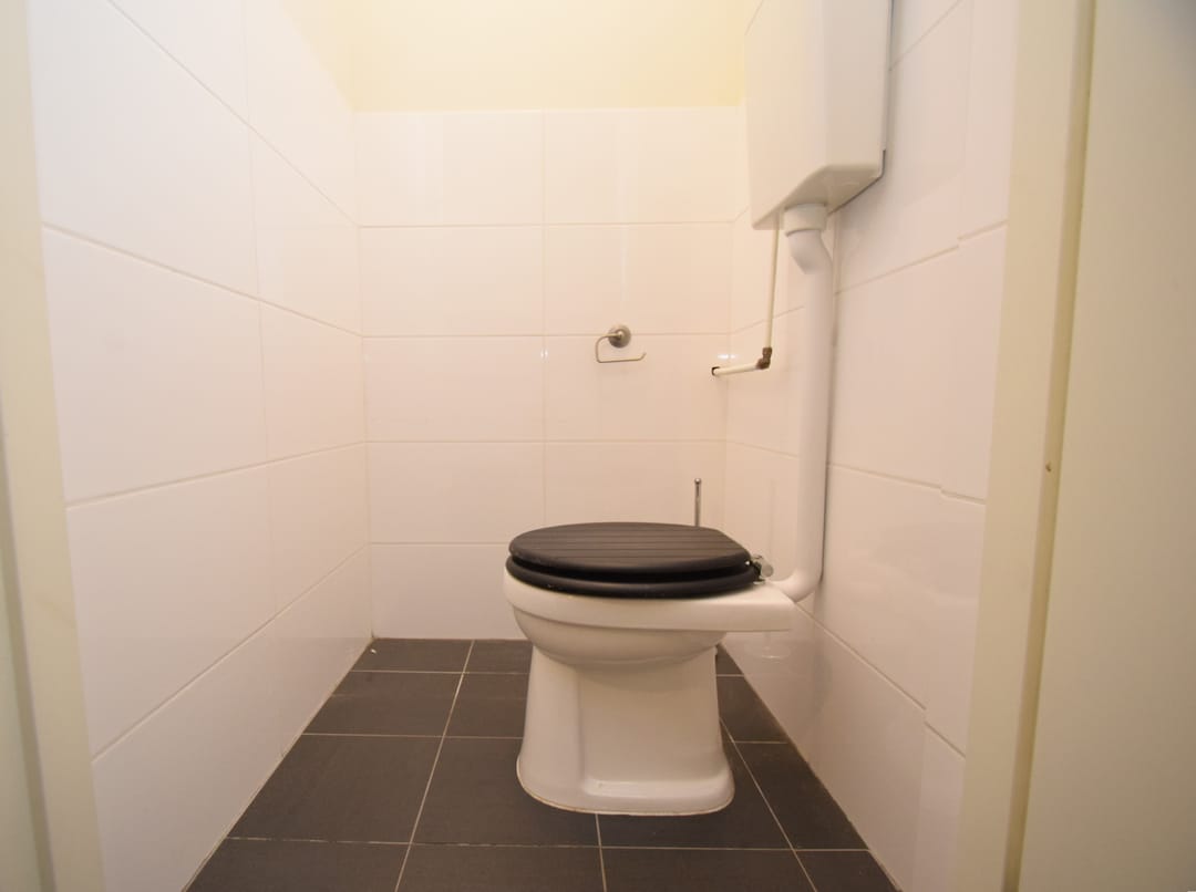 Toilet en een kleine buitenruimte.