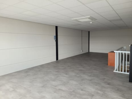 Bedrijfsunit/kantoorruimte van c.a. 69 m2 (gelegen op de eerste verdieping die via een trap te bereiken is)+een kleine Pantry en Toilet gelegen op de begane grond van ca. 6 m2