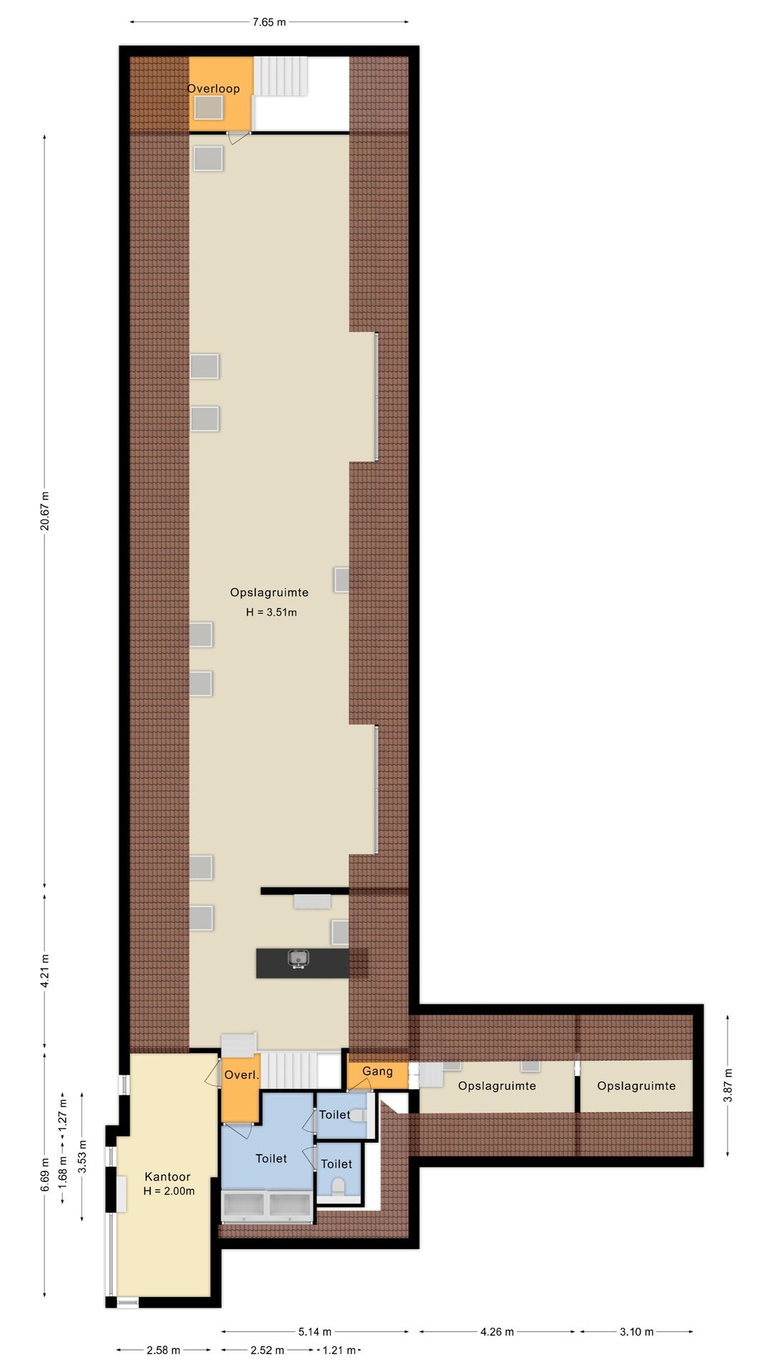 Het object omvat ca. 638 m² VVO en 853 m² BVO verdeeld in: