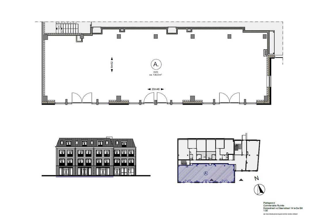 Op de begane grond van dit project komen één of twee casco commerciële units beschikbaar, variërend van één unit van ca. 130m² tot twee units van elk ca. 64m² vvo. Ideaal voor kleinschalige bedrijven, maatschappelijke dienstverlening, ambachtelijke ondernemingen of kantoorruimte.
