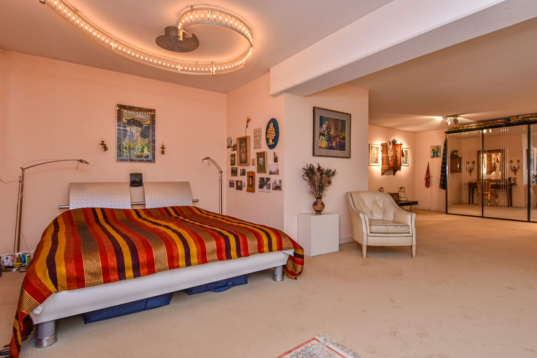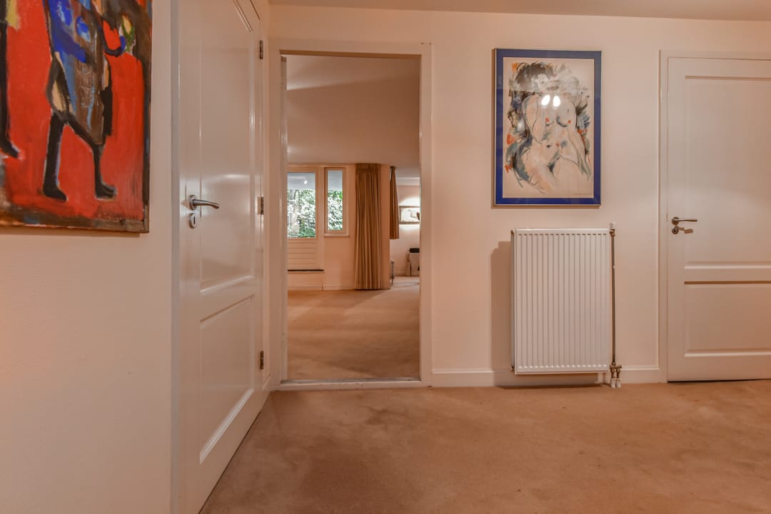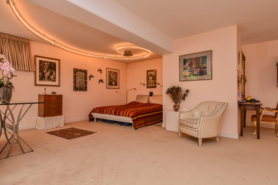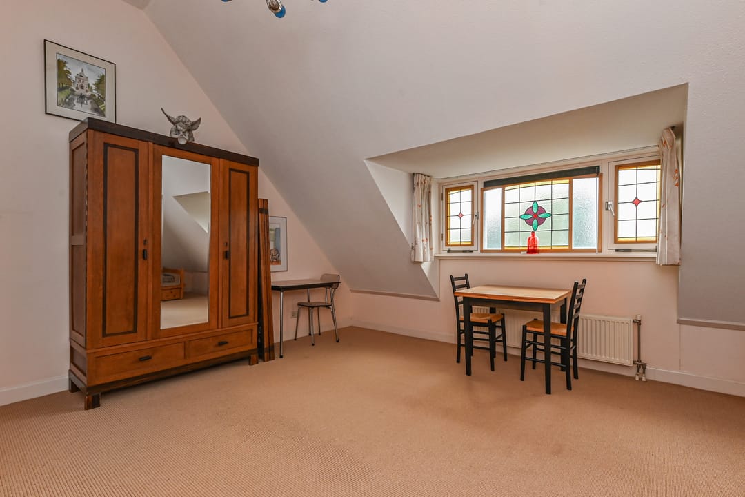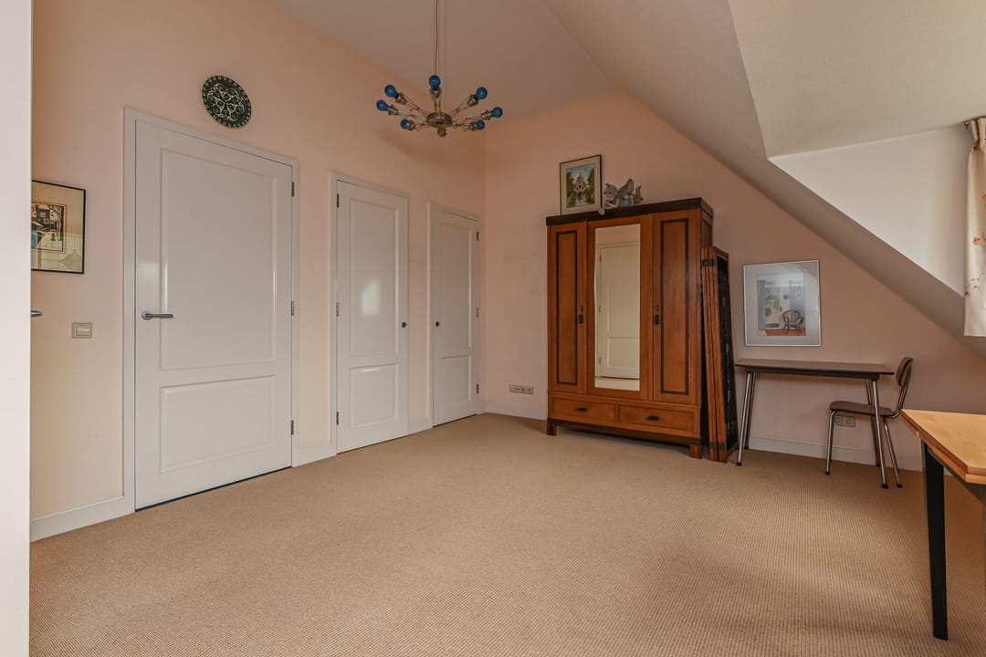 Hal met modern, vrijhangend toilet en toegang tot ruime inloopkast, bergkamer van ca. 29 m2. Zeer grote werk / slaapkamer van maar liefst ca. 62 m2 met openslaande deuren naar terras / tuin.
