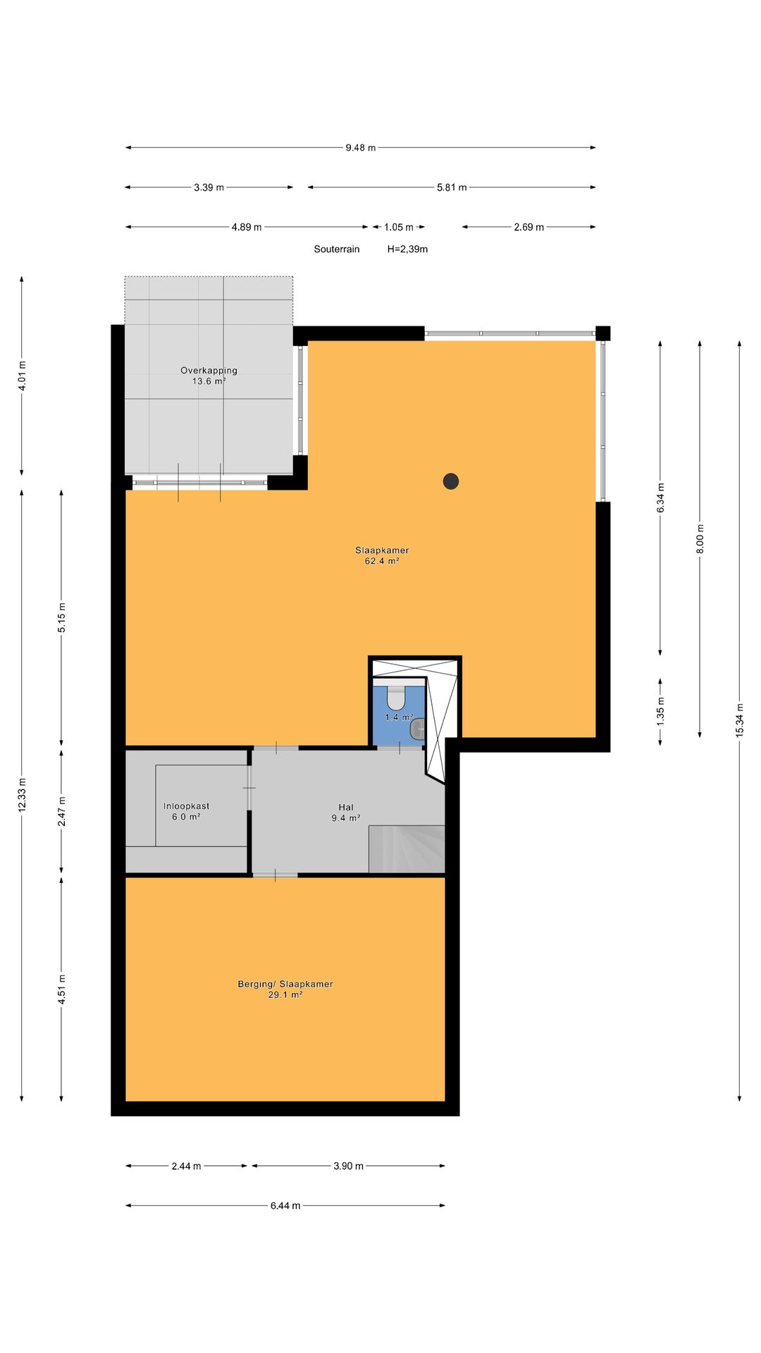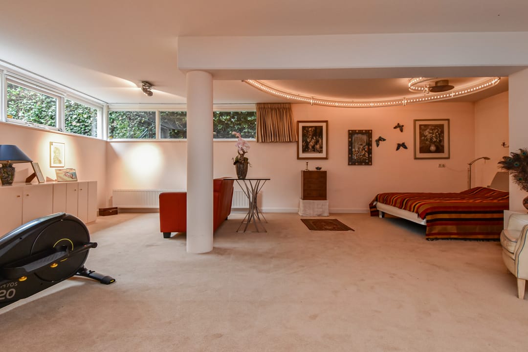Deze vierlaags woning heeft in het souterrain de beschikking over een bergkamer van ca. 29 m2, een inloopkast, een riante werkkamer van ca. 62 m2 en toilet. Het souterrain is desgewenst buitenom te bereiken.
