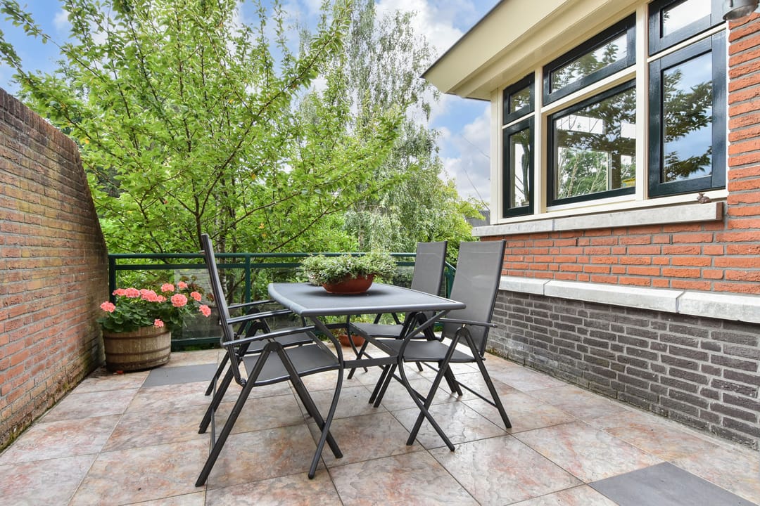 De beschutte achtertuin heeft met een Zuidoost oriëntatie een optimale bezonning en biedt veel privacy!