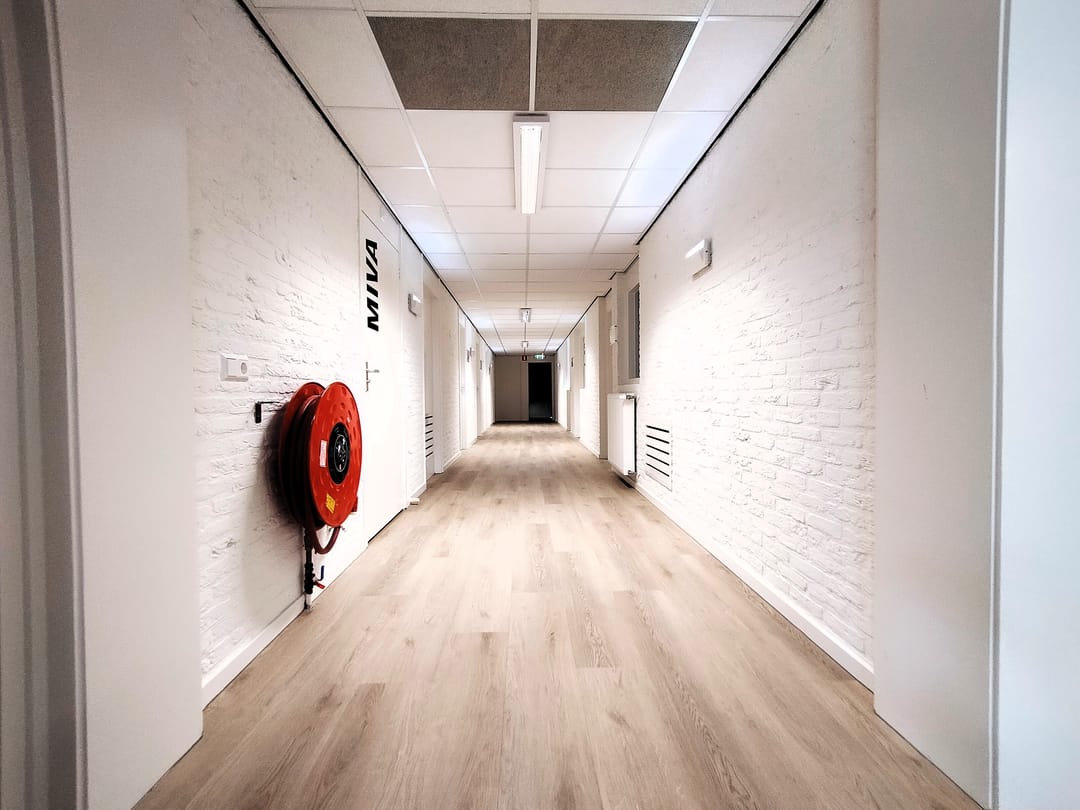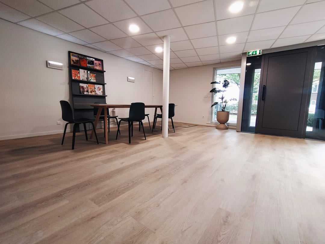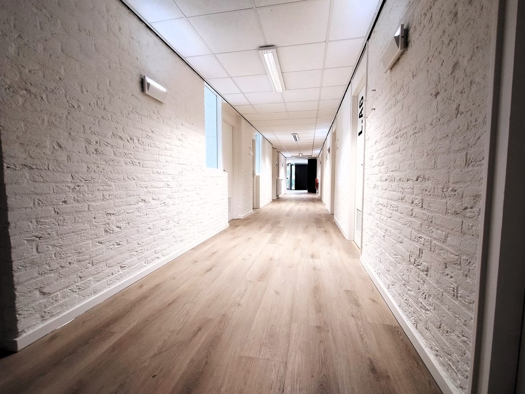 - Betonvloeren voorzien van deels PVC vloerafwerking en laminaat;