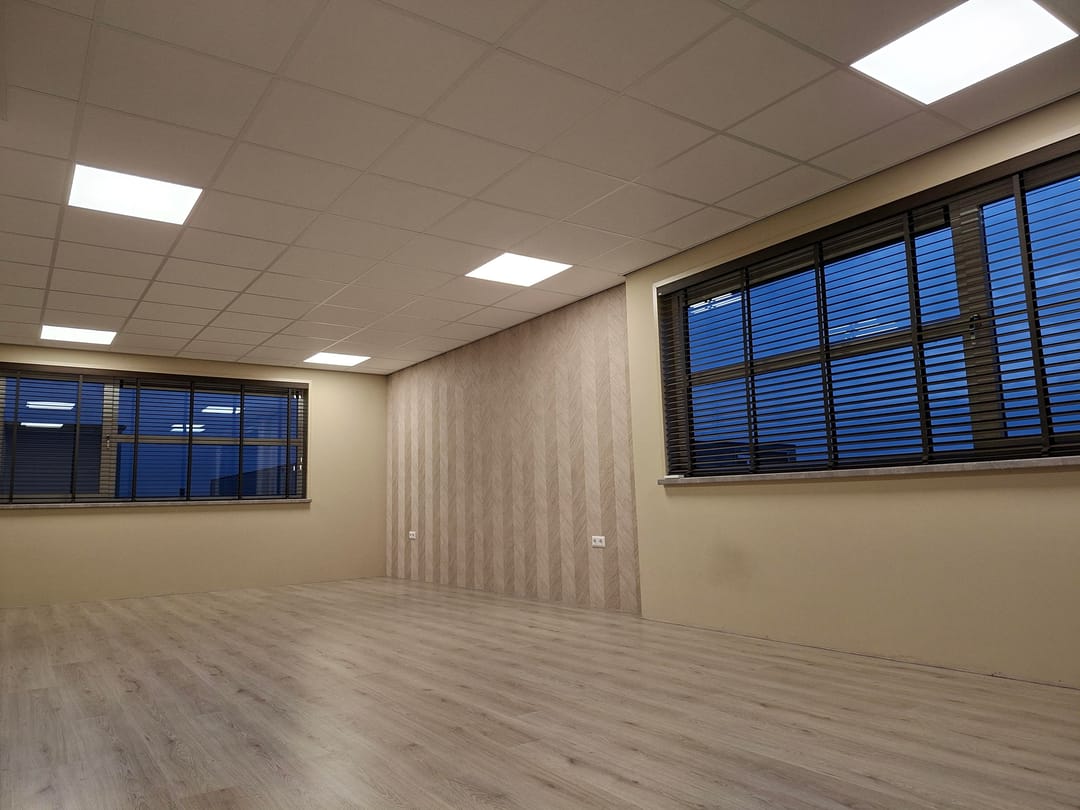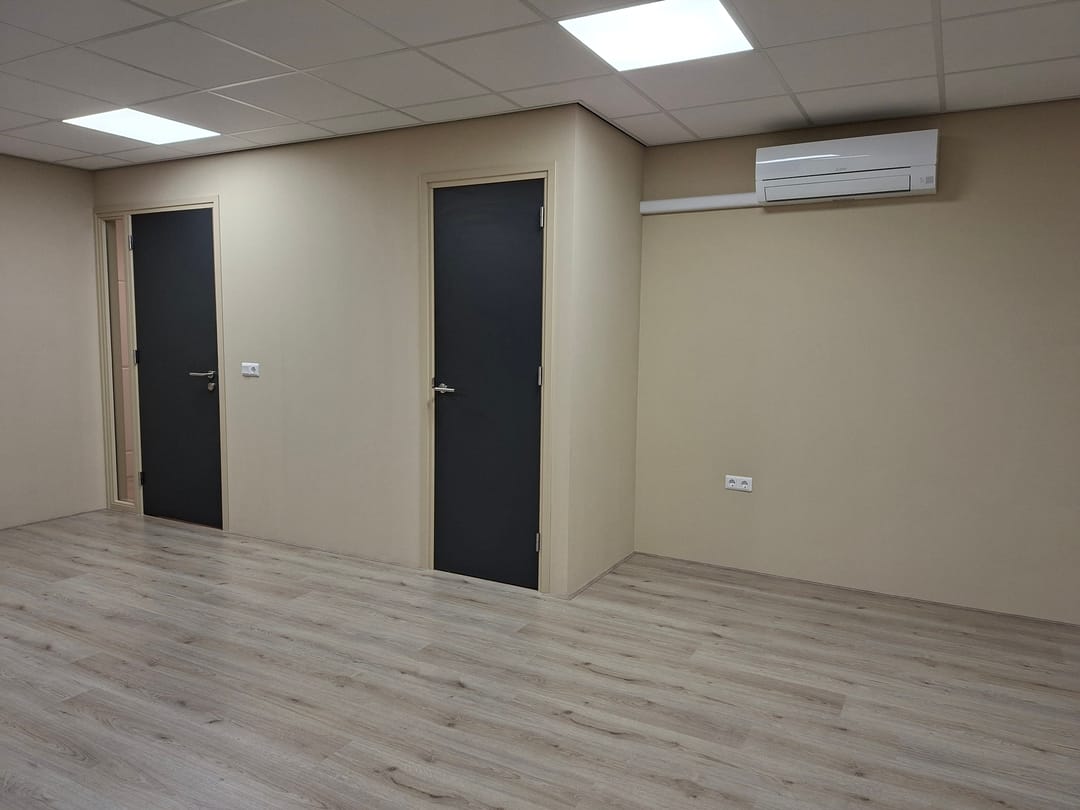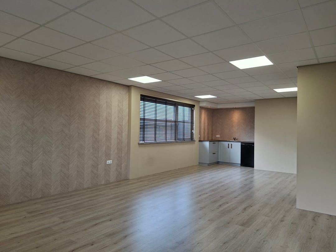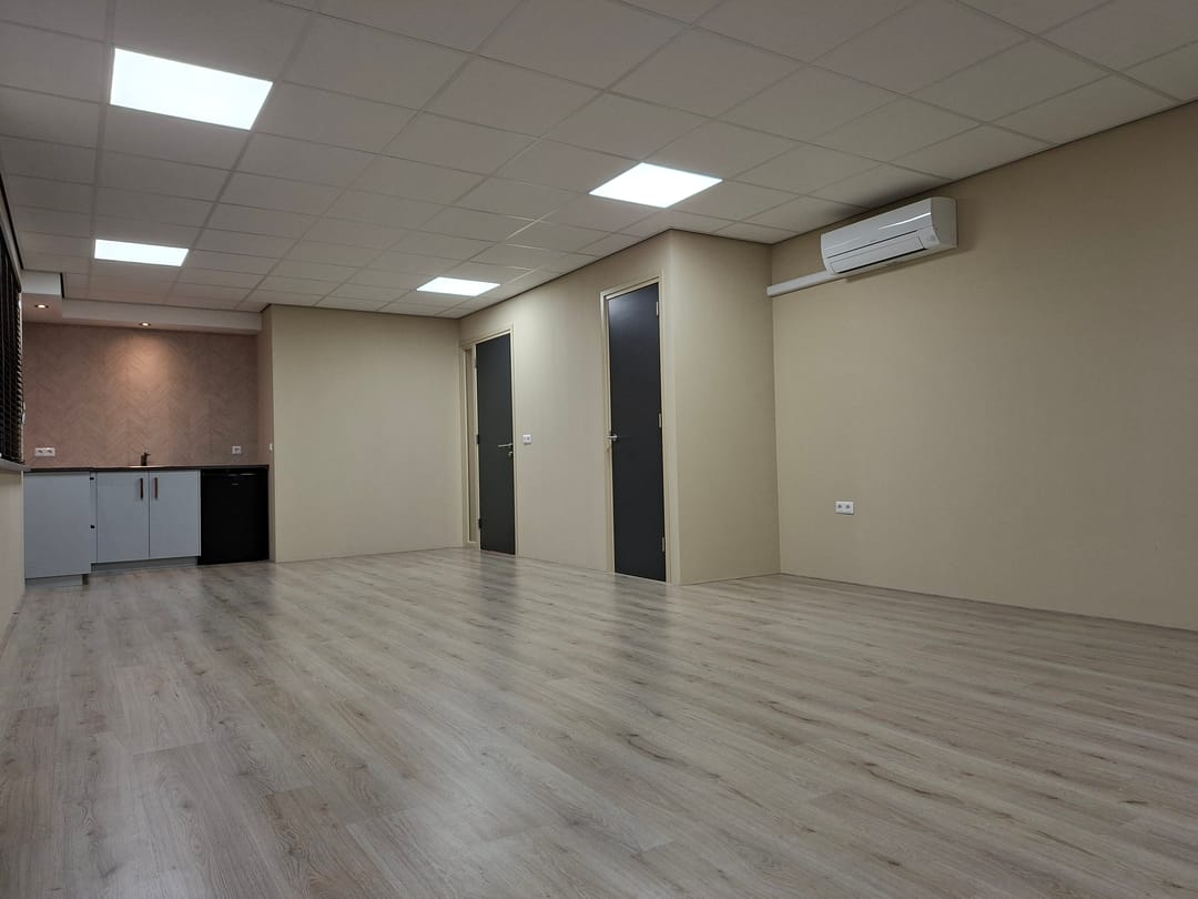 Dankzij de hoekligging en grote raampartijen is er veel natuurlijke lichtinval, wat zorgt voor een prettige en inspirerende werkomgeving. De totale oppervlakte bedraagt ca. 50 m². De ruimte is recent opgeleverd en heeft een warme, stijlvolle uitstraling, waardoor deze geschikt is voor diverse doeleinden zoals kantoor, praktijk, studio of consultruimte. Daarnaast is de ruimte voorzien van luxe jaloezieën en is de keuken uitgerust met een koelkast, die desgewenst tegen een kleine meerprijs kan worden gehuurd. Ook zijn de LED-panelen per twee afzonderlijk te schakelen, zodat u altijd de ideale lichtsterkte heeft voor uw werkzaamheden.