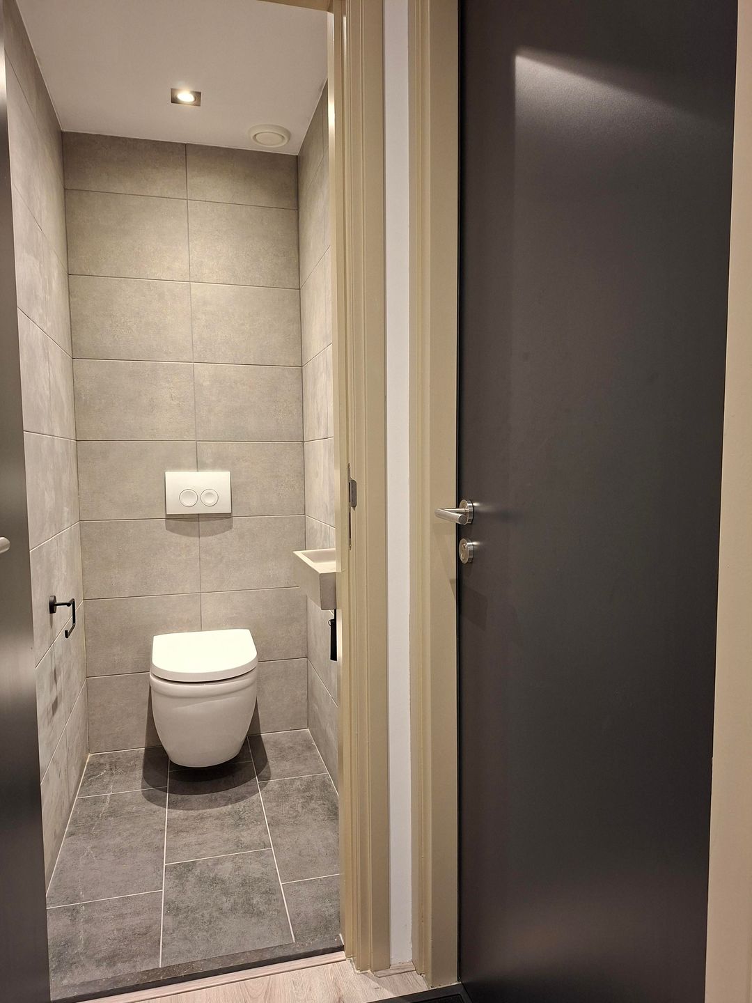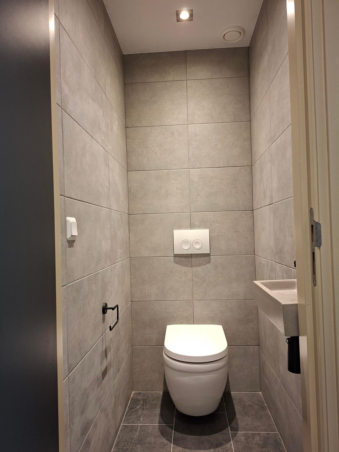 •Luxe toiletruimte met design-wc, spotverlichting en fonteintje