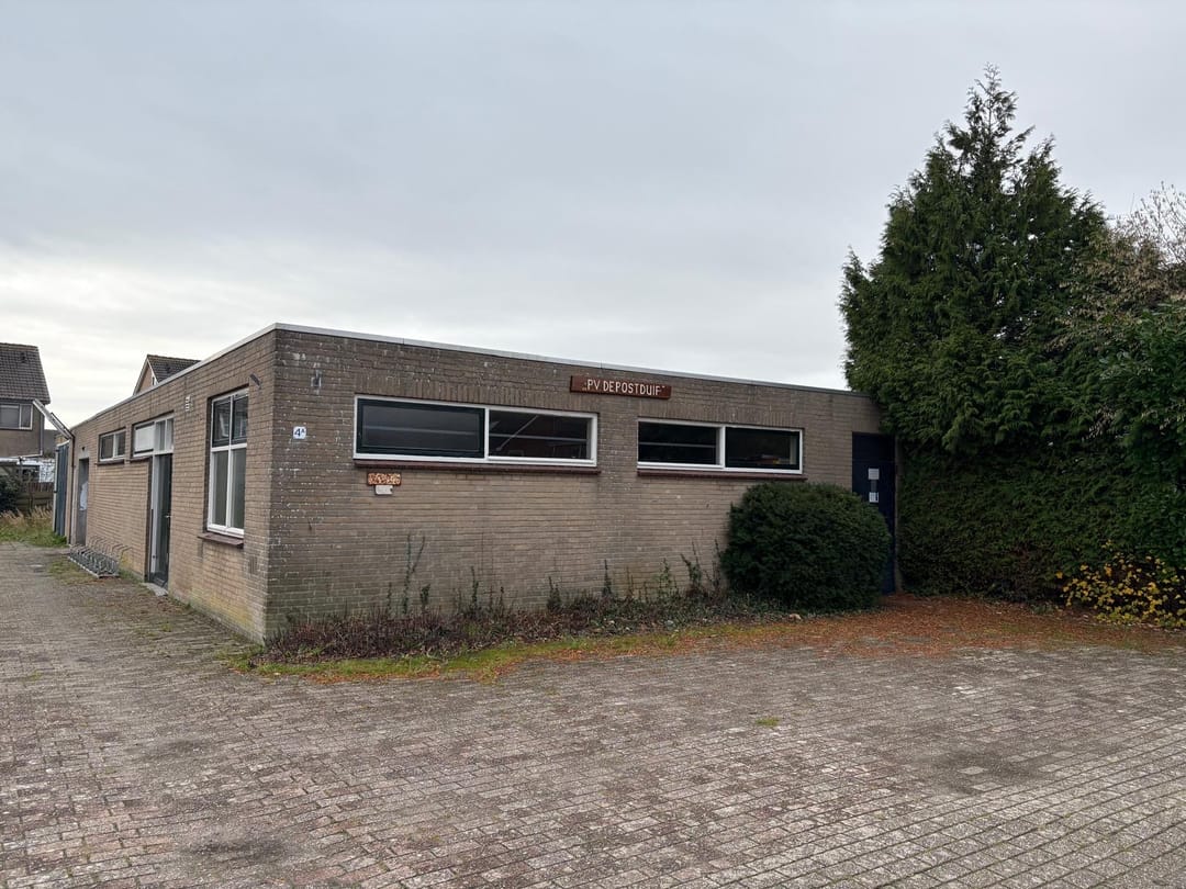 Multifunctioneel gebouw wat jaren lang dienst heeft gedaan als thuisbasis van Postduivenvereniging "P.V. De Postduif". Het pand is centraal gelegen in het Oosterpark en geschikt voor diverse doeleinden. Het geheel omvat zo'n 140 m2 en beschikt over een aantal parkeerplaatsen op eigen terrein.