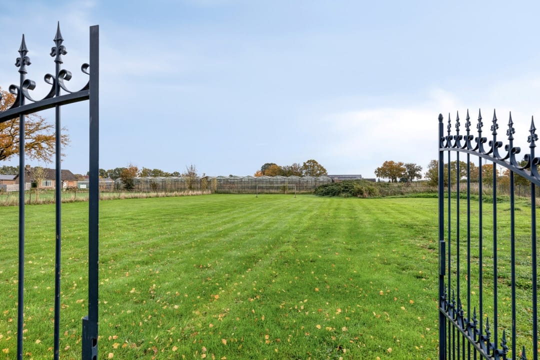 Aan de voorzijde is er een elektrische poort die toegang biedt tot het perceel.