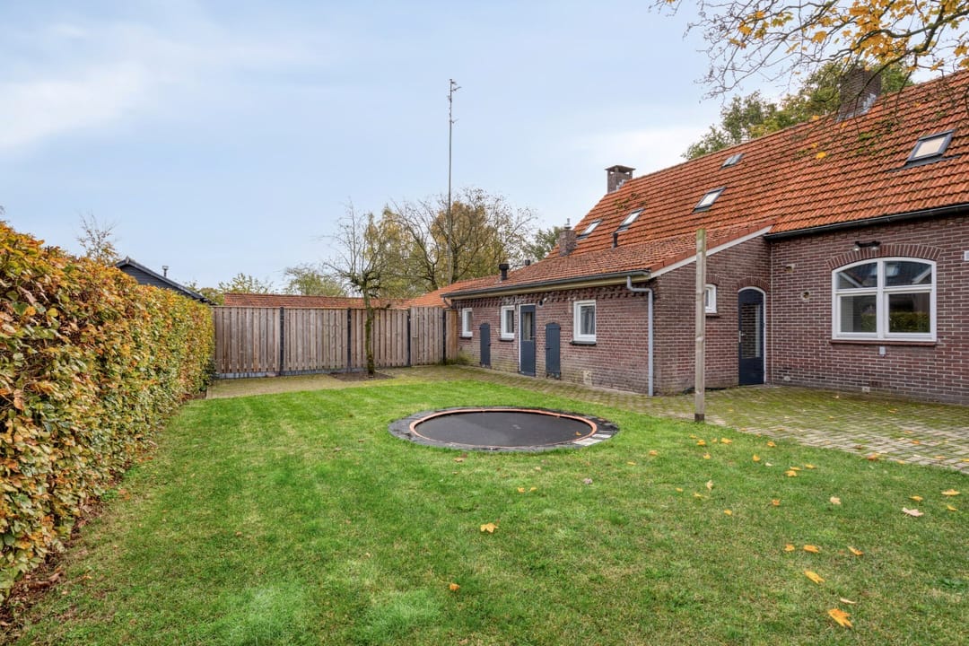 Achter de bebouwing ligt een ruime speelweide met vaste beplanting. Er zijn ruime parkeermogelijkheden op eigen terrein.