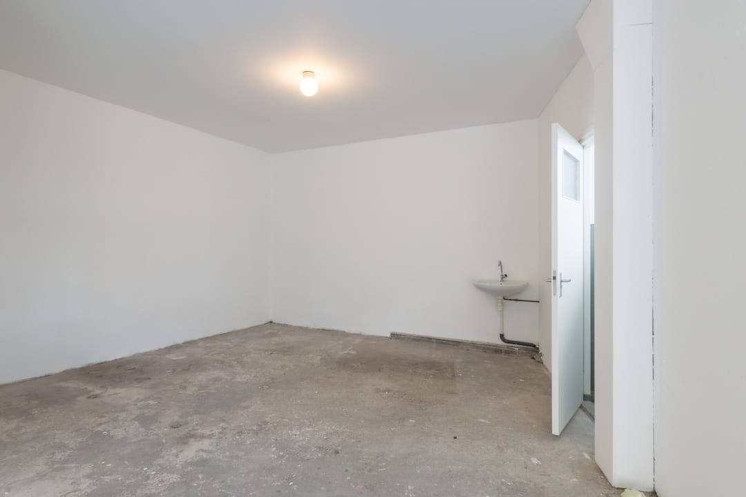 Aan de achterzijde van de ruimte is een wastafel (uit te breiden naar pantry) en een toilet.