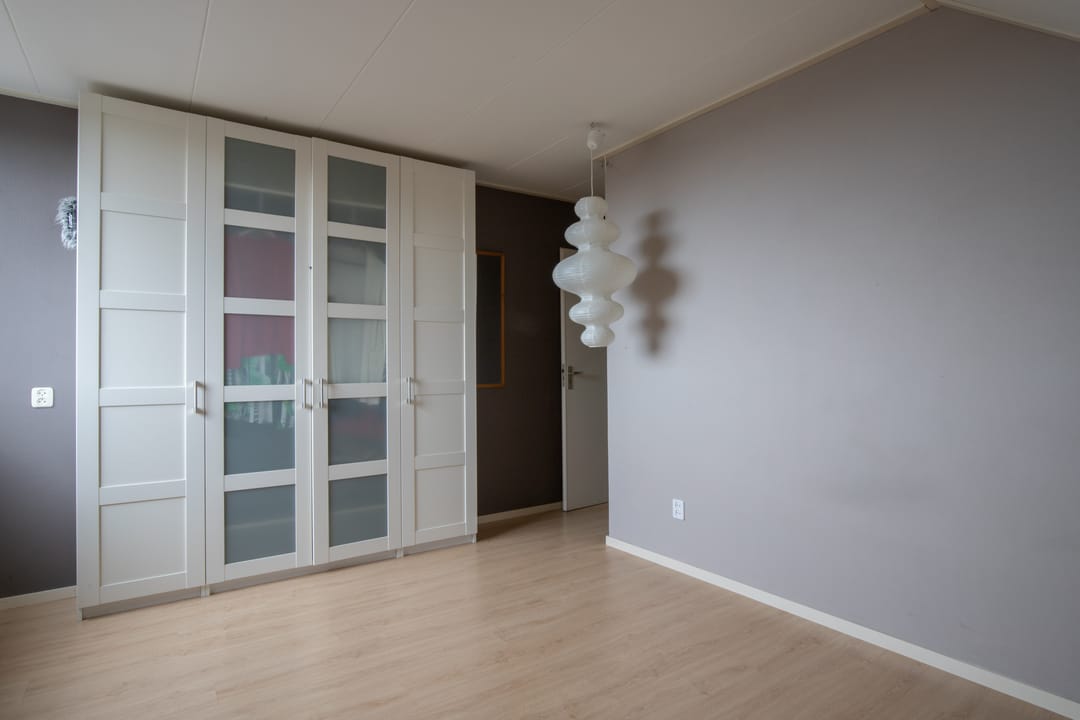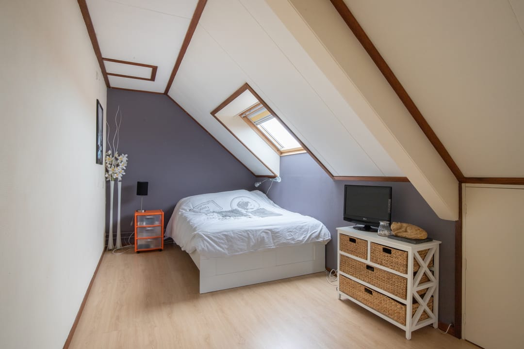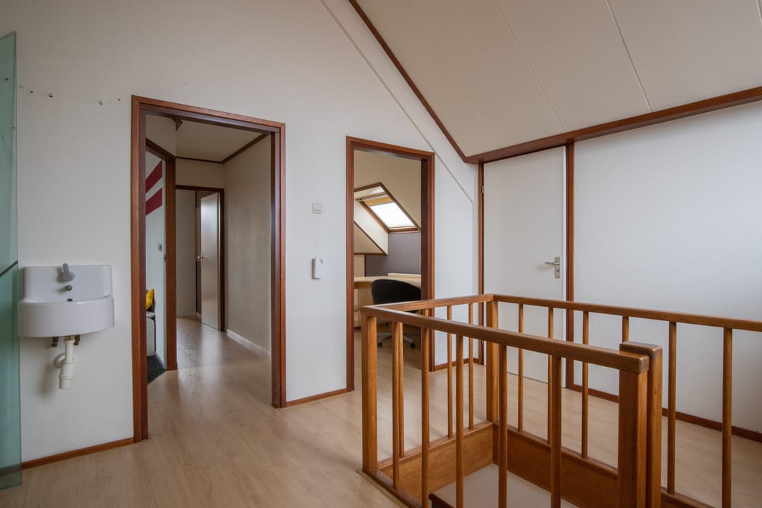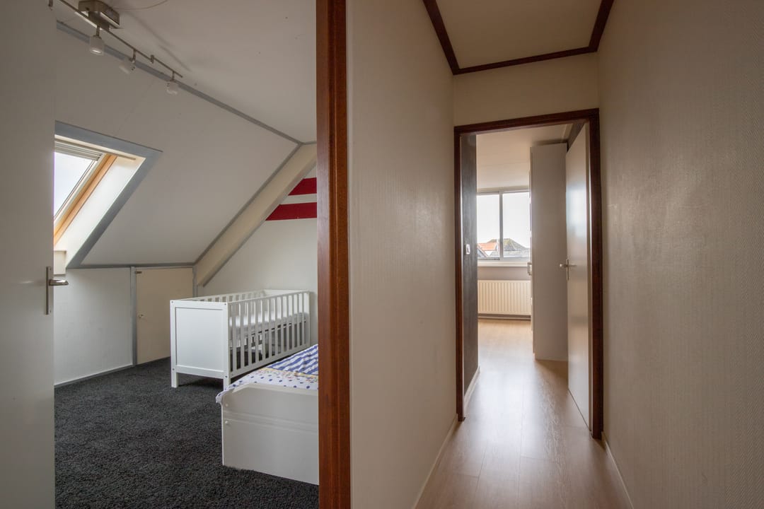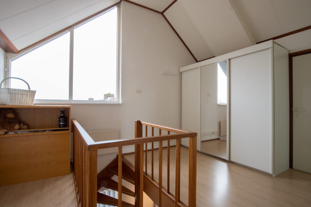 Op de 2e verdieping is heerlijk veel ruimte tot opbergen. Er zijn op de overloop royale kasten gemaakt tegen de schuine wanden. Daarnaast is er toegang tot een drietal slaapkamers die ieder hun eigen bergruimte hebben tegen het schuine dak aan.