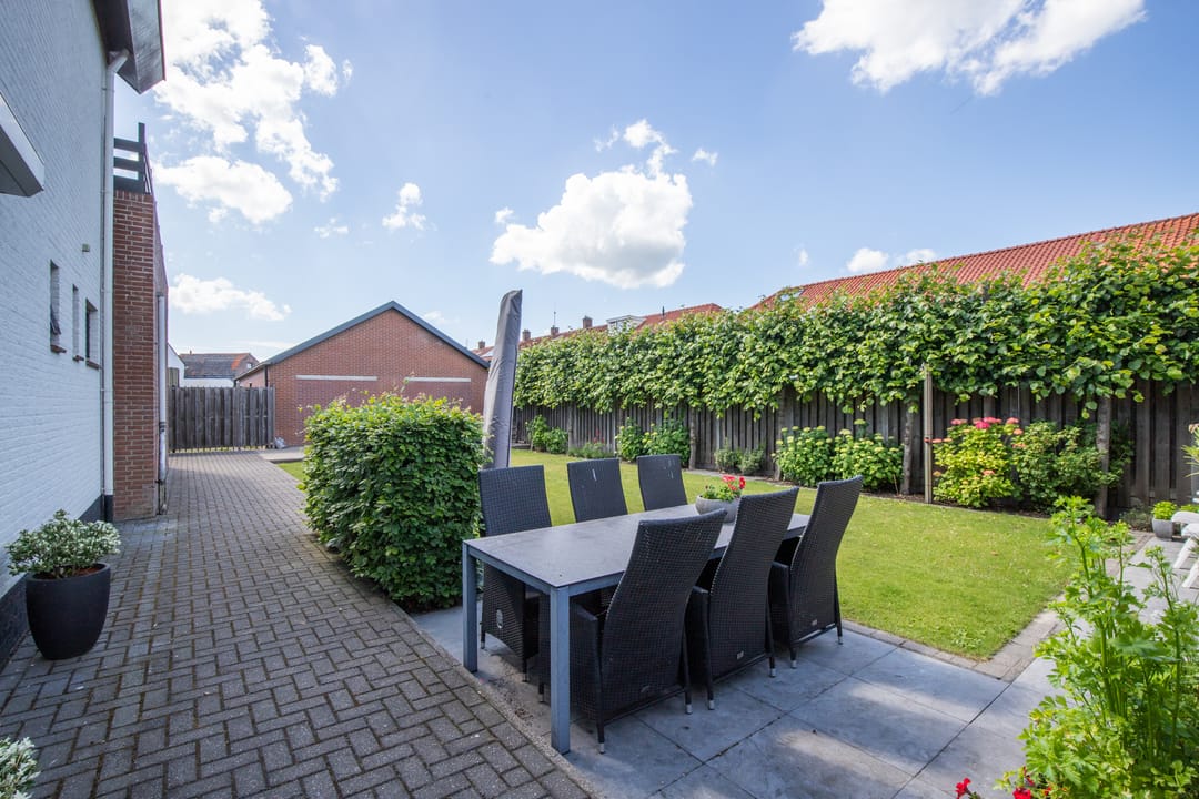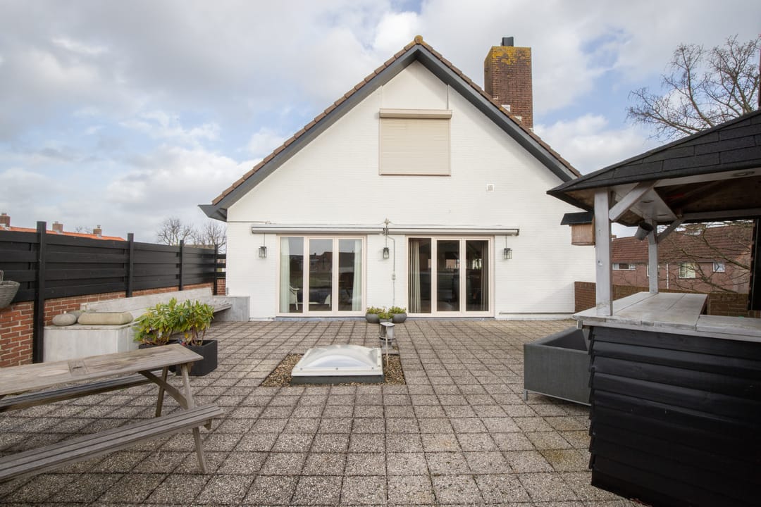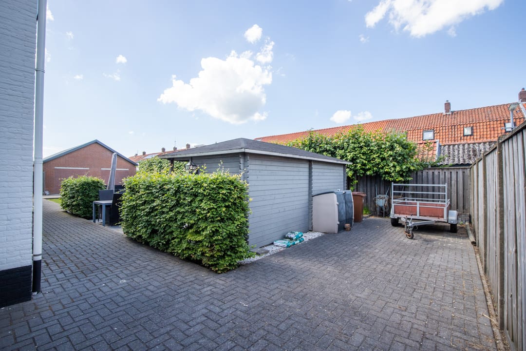 Verrassend bij deze woning is de grote tuin! U hebt hier heerlijk de ruimte voor verschillende terrassen, de leilindes bieden zomers veel privacy in de tuin. Er is een tuinhuis met overkapping aanwezig en via de poort aan de zijkant kunt u de tuin bereiken. De tuin is tot op heden altijd keurig onderhouden en door het gras en de bestrating vrij onderhoudsarm.
