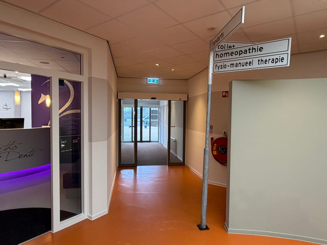 De ruimte is uitermate geschikt voor huisartsenpraktijk, tandarts, fysiotherapie, manuele therapie, schoonheidsspecialiste, etc. etc.