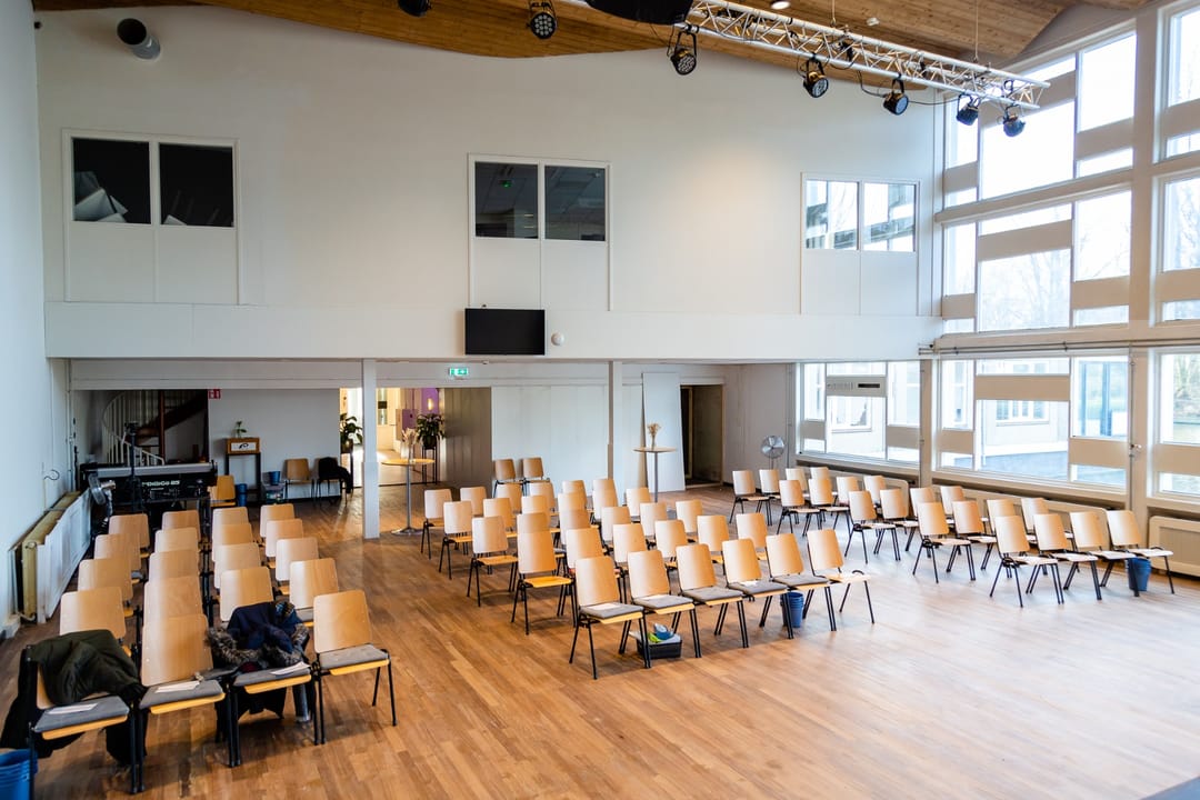 De imposante kerkzaal vormt het kloppende hart van het gebouw en biedt plaats aan circa 200 personen. Daarnaast beschikt het pand over diverse aanvullende faciliteiten, waaronder een kantine, goed uitgeruste sanitaire voorzieningen, een mediaruimte en meerdere vergaderruimten. De ligging aan het water versterkt de unieke uitstraling van de kerk en draagt bij aan de serene en inspirerende ambiance.