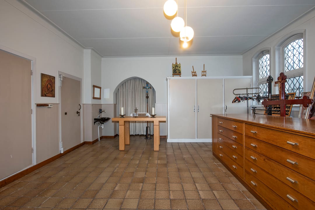 Aanwezige garage box op het terrein van de kerk wordt niet mee verkocht.