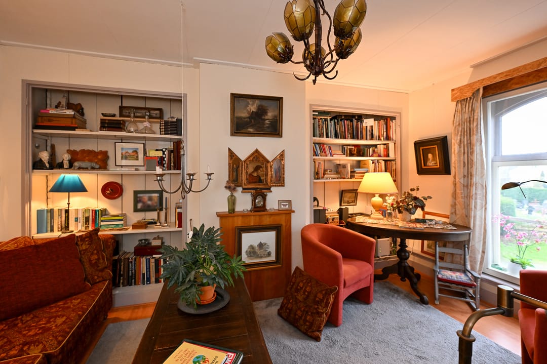 Entree met overloop, keuken, slaapkamer 1, slaapkamer 2 en woonkamer met kasten.