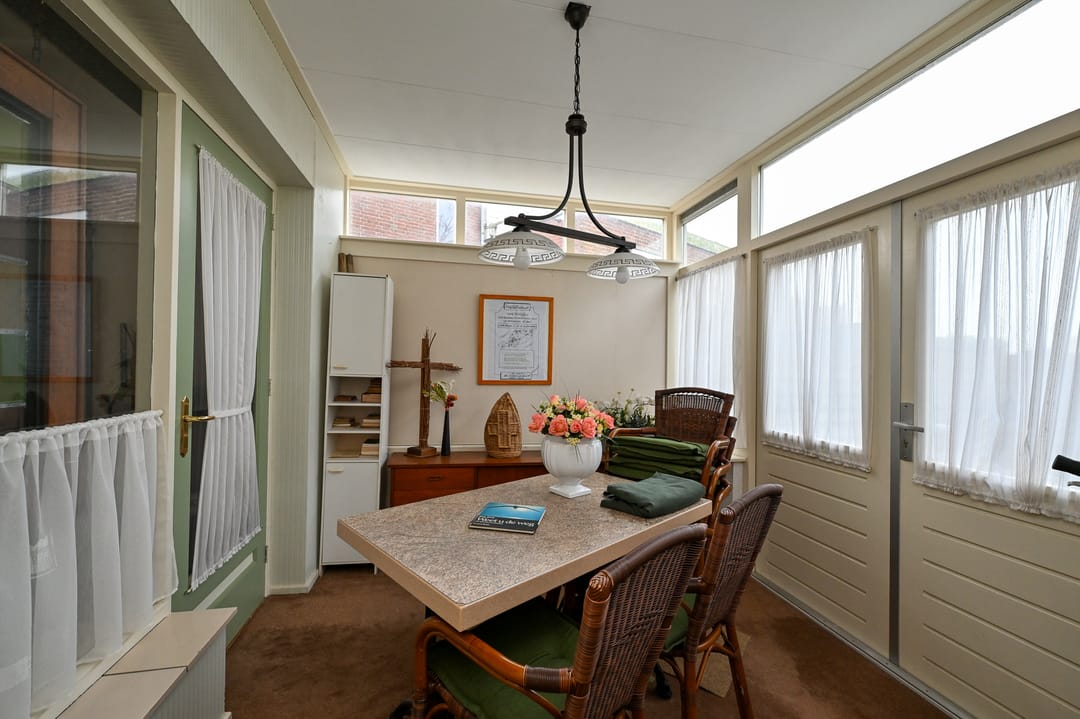 Indeling pastorie: Entree/hal, kleine werk spreekkamer, trap naar de kelder, toilet ruimte, hal aan de achterzijde, ruimte keuken, grote kamer met aangrenzend een serre.