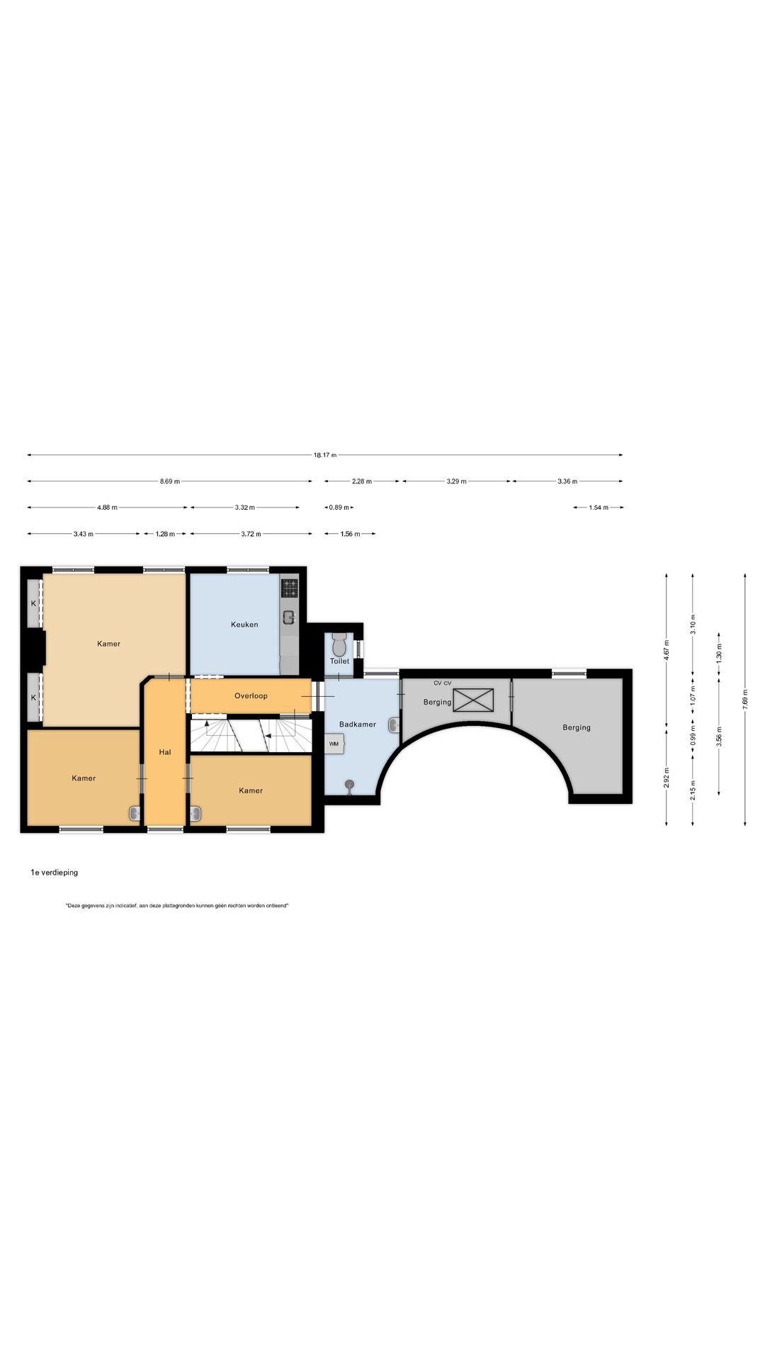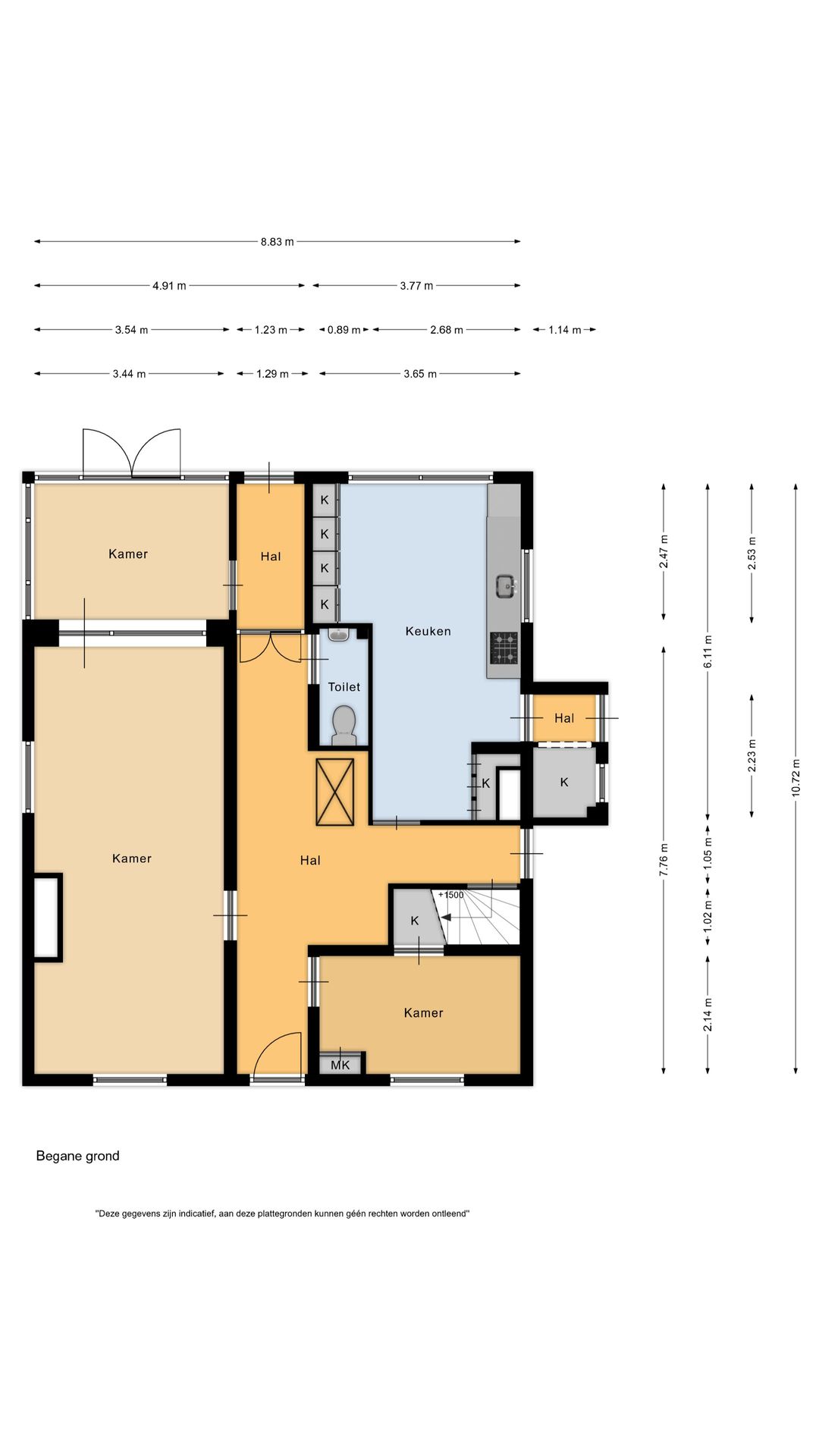 Het vloeroppervlakte van de begane grond is ca. 95 m2.