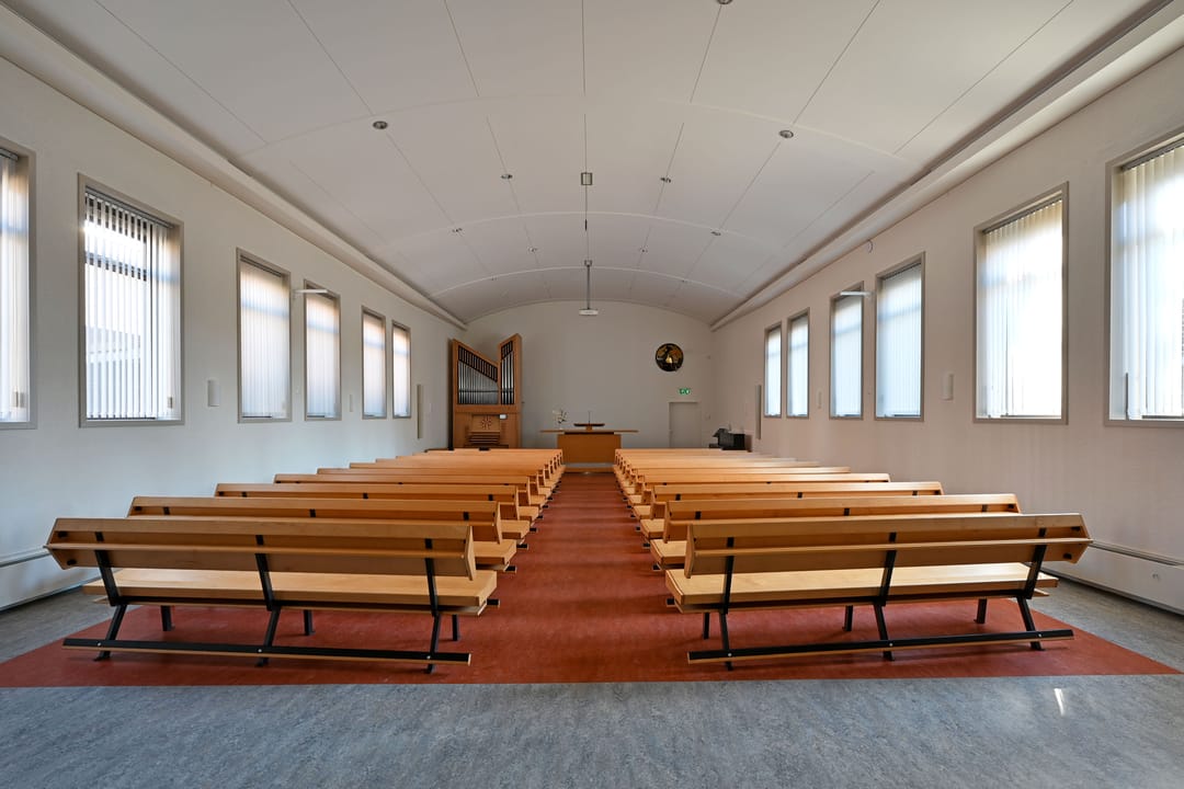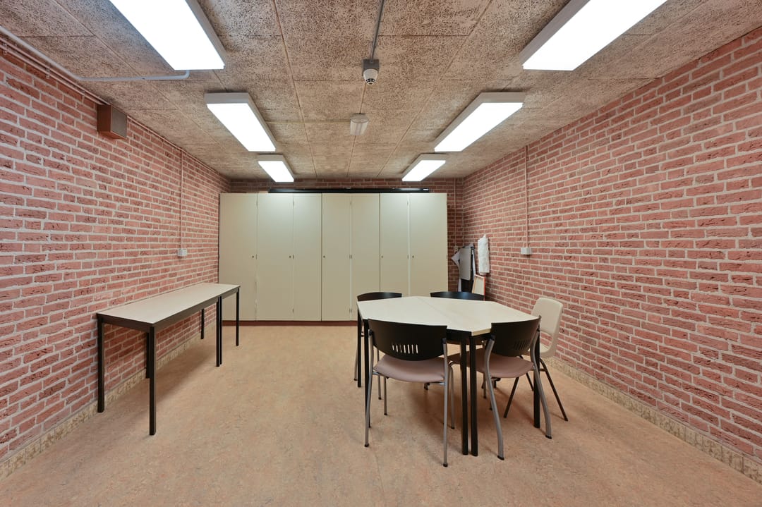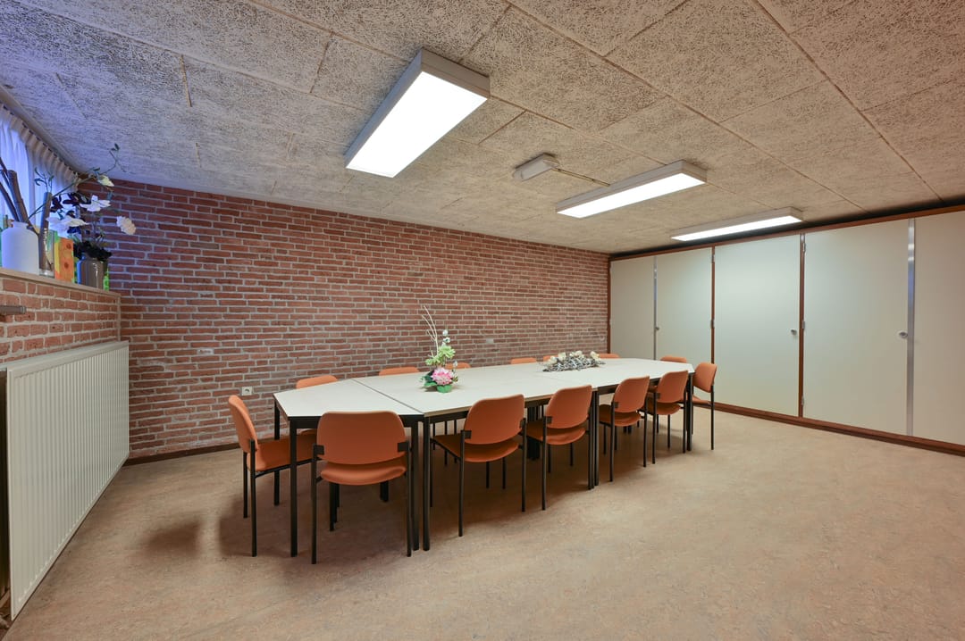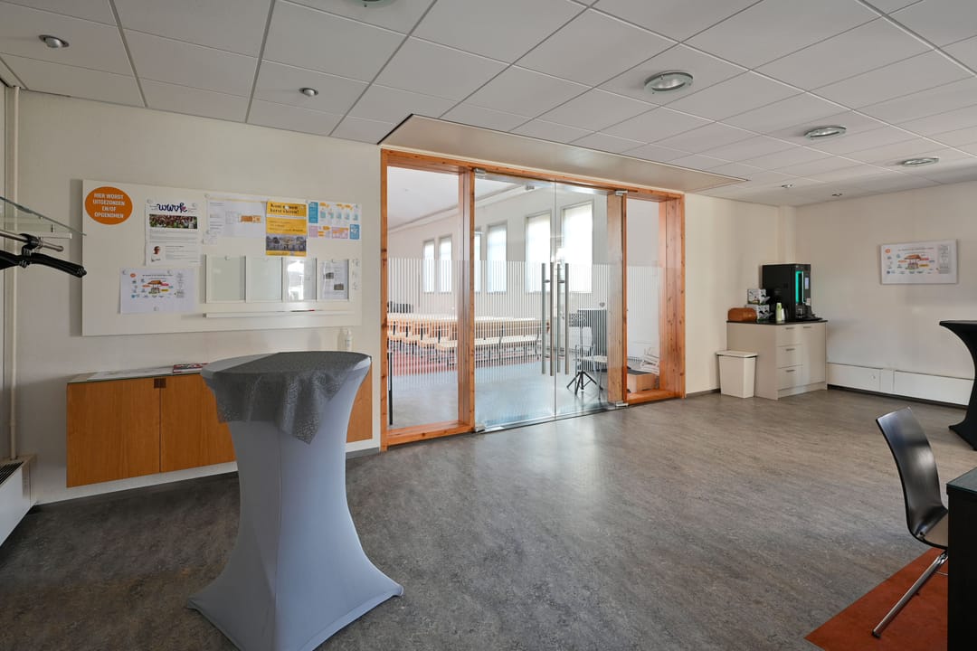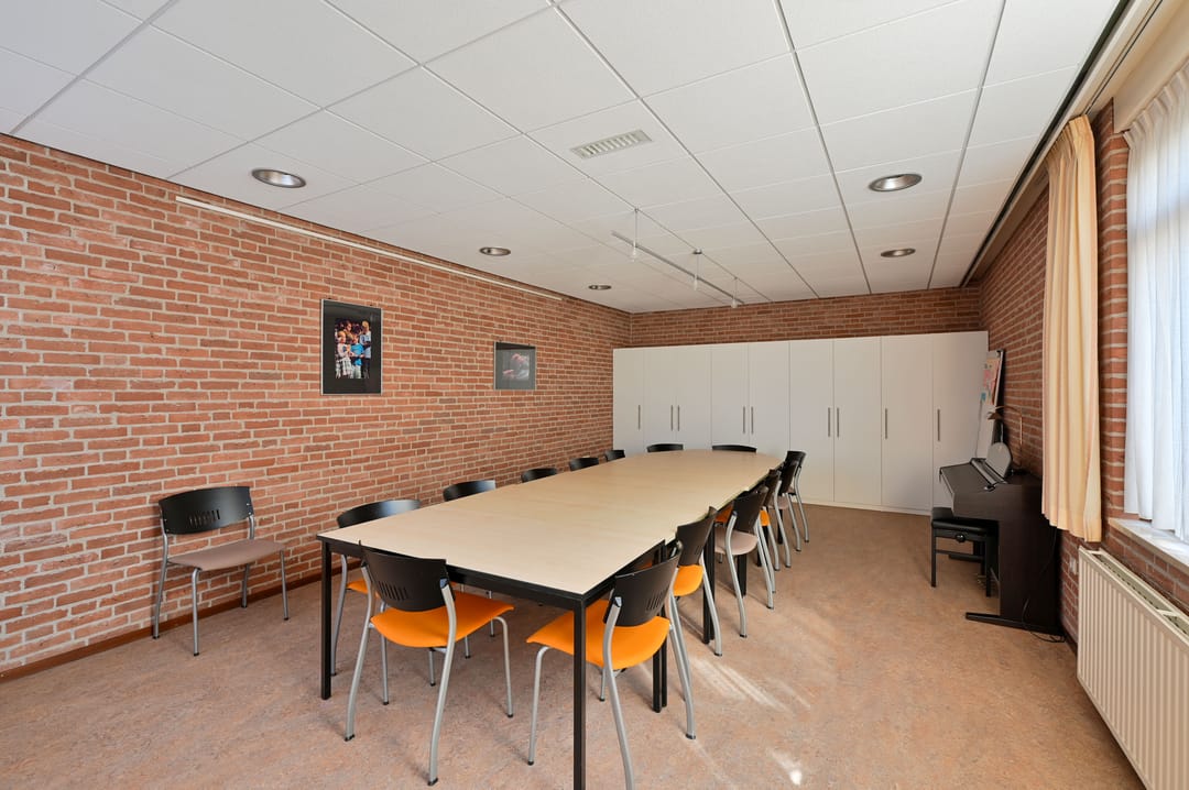 De kerkzaal vormt het hart van het gebouw. Een lichte, open ruimte met prettige zichtlijnen en een ruimtelijke beleving die direct uitnodigt om hier te verblijven. Daaromheen liggen diverse nevenruimten die geschikt zijn voor overleg, bijeenkomsten of meer kleinschalig gebruik.