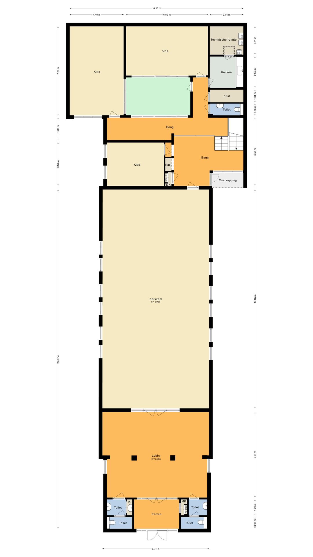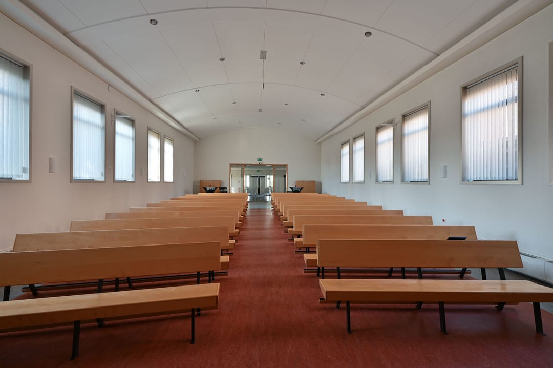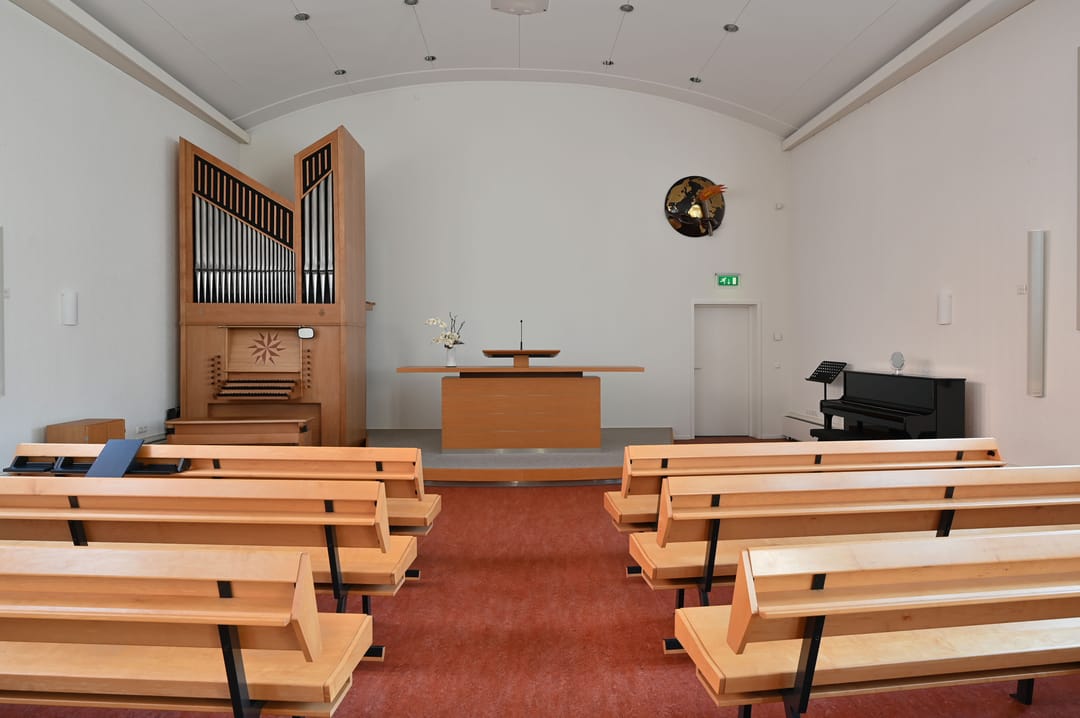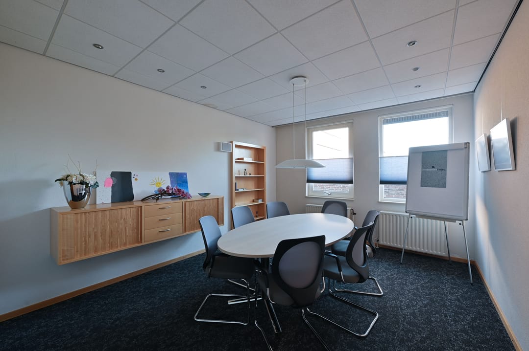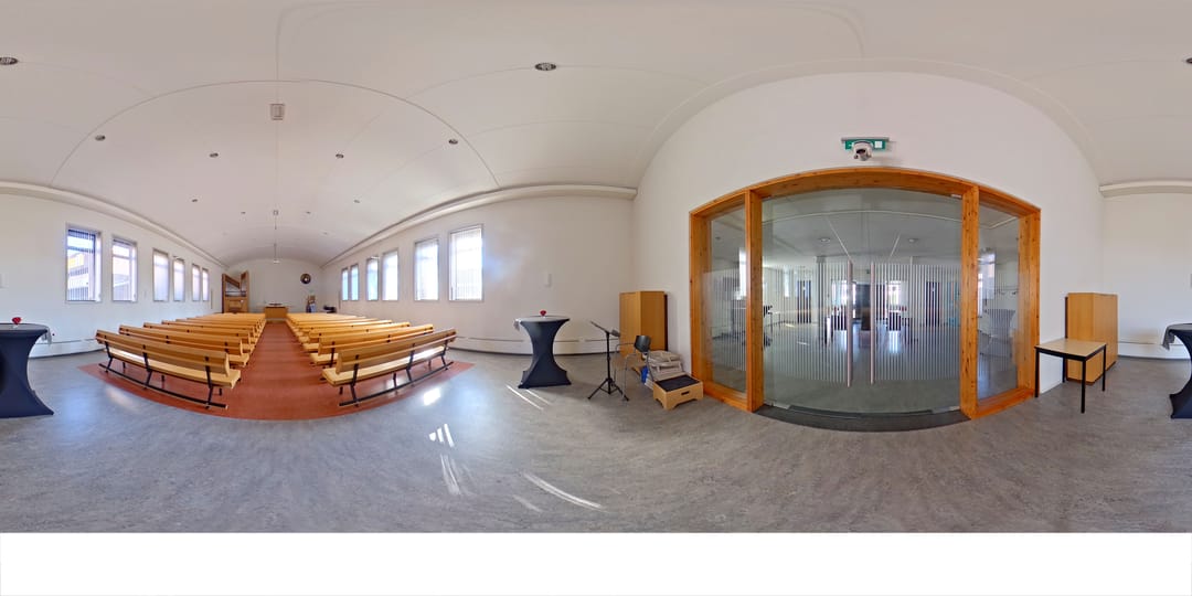 De kerkzaal vormt het hart van het gebouw. Een lichte, open ruimte met prettige zichtlijnen en een ruimtelijke beleving die direct uitnodigt om hier te verblijven. Daaromheen liggen diverse nevenruimten die geschikt zijn voor overleg, bijeenkomsten of meer kleinschalig gebruik.