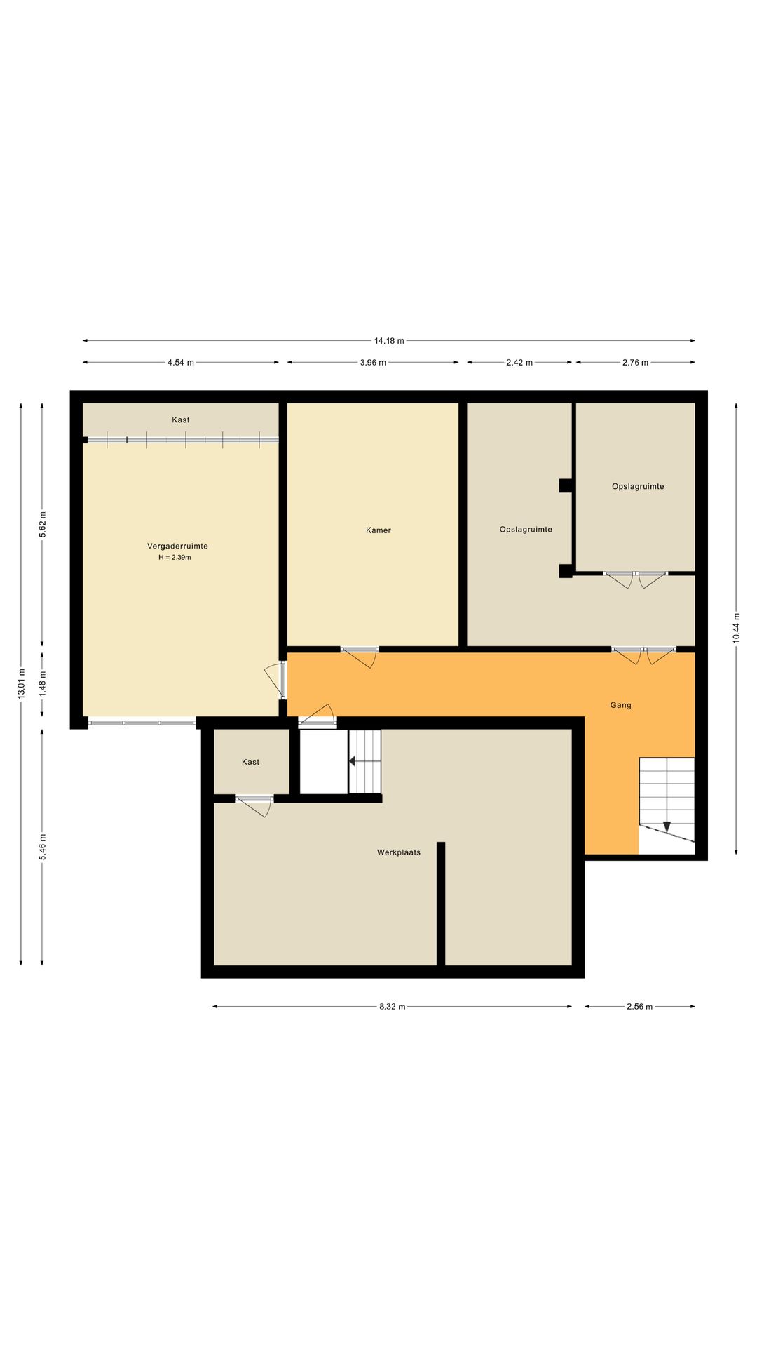 - Niet aanwezig, wel mogelijk (aangebouwd, 150 m²)