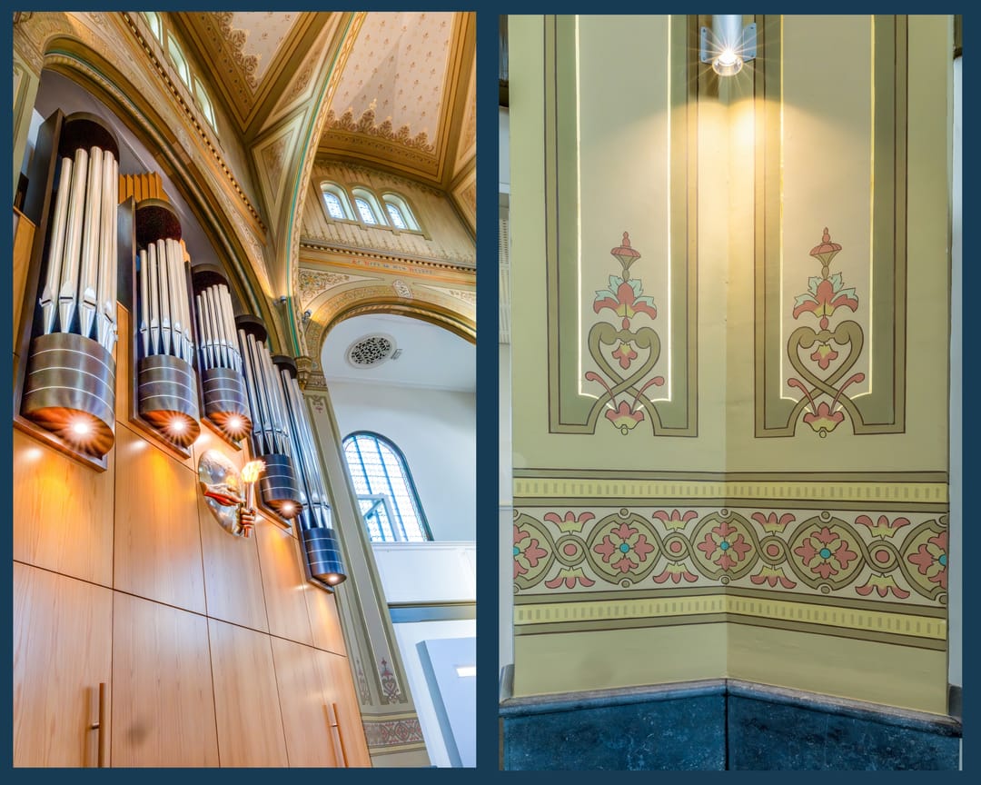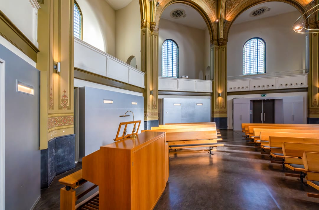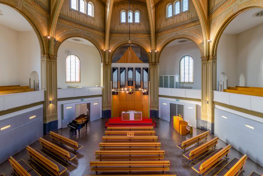 -Monumentale allure: de indrukwekkende kerkzaal met balkon rondom, originele muurschilderingen en een fenomenale akoestiek maken dit een ruimte met impact.