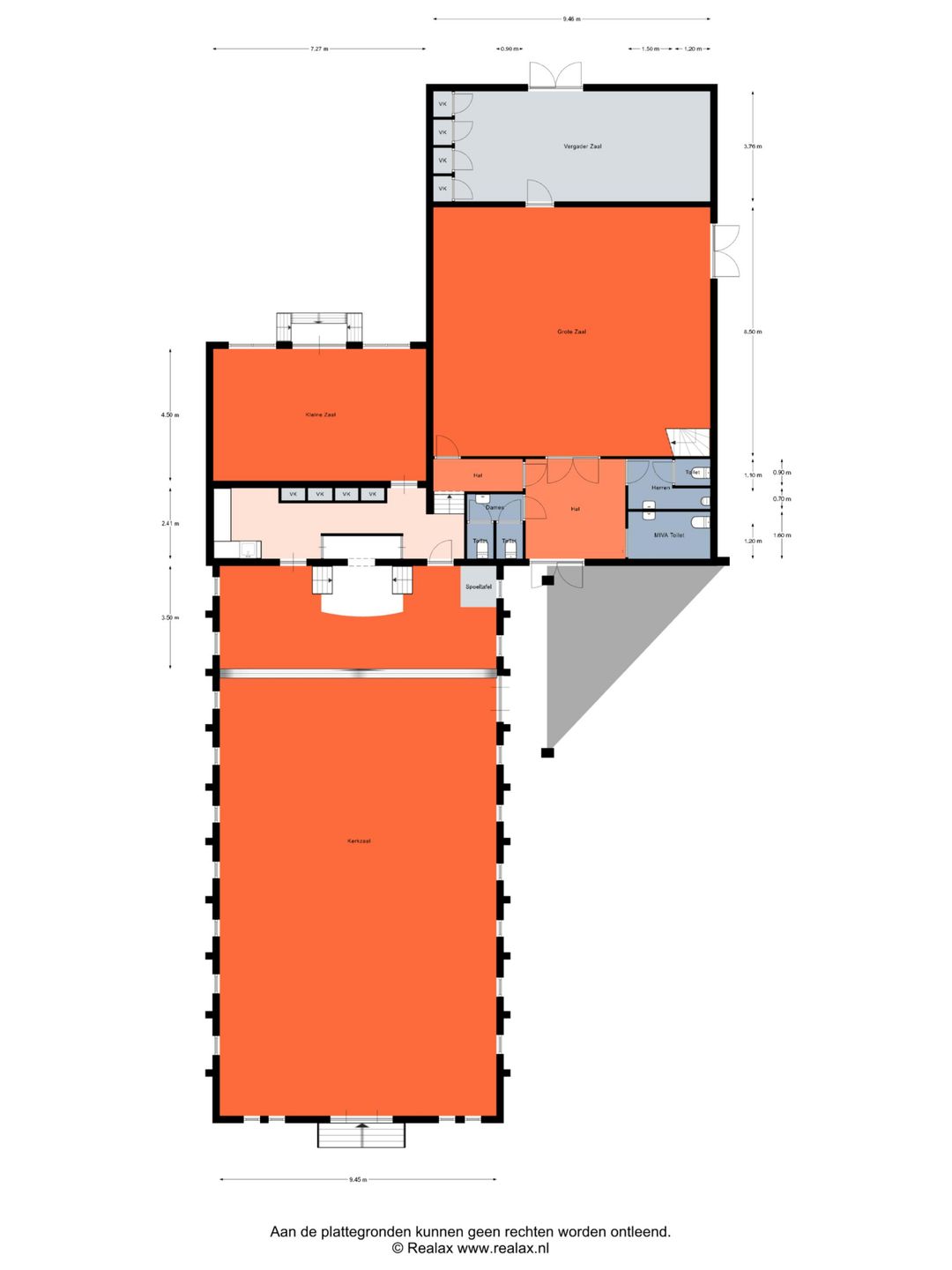 ca. 120 m² kerkzaal op de begane grond