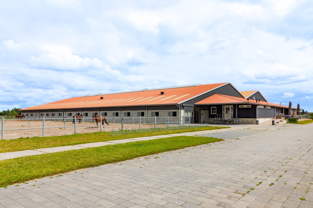 Tegen de gevels van de stallen bevinden zich verder twee paddocks welke beide zijn voorzien van een pop-up sprinklerinstallatie en automatische drinkbakken.